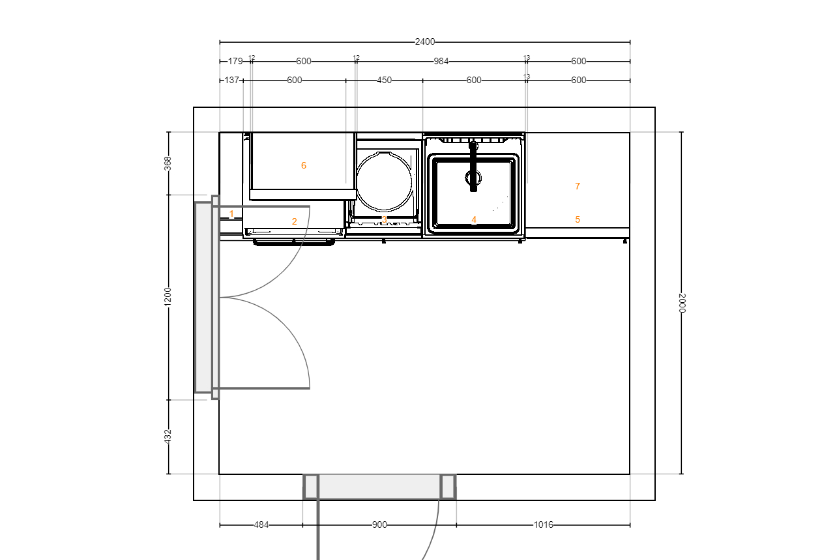 Köögis lisaks 2 avatud riiulit ja mingi katteliist vms kubust tuleva toru peitmiseks