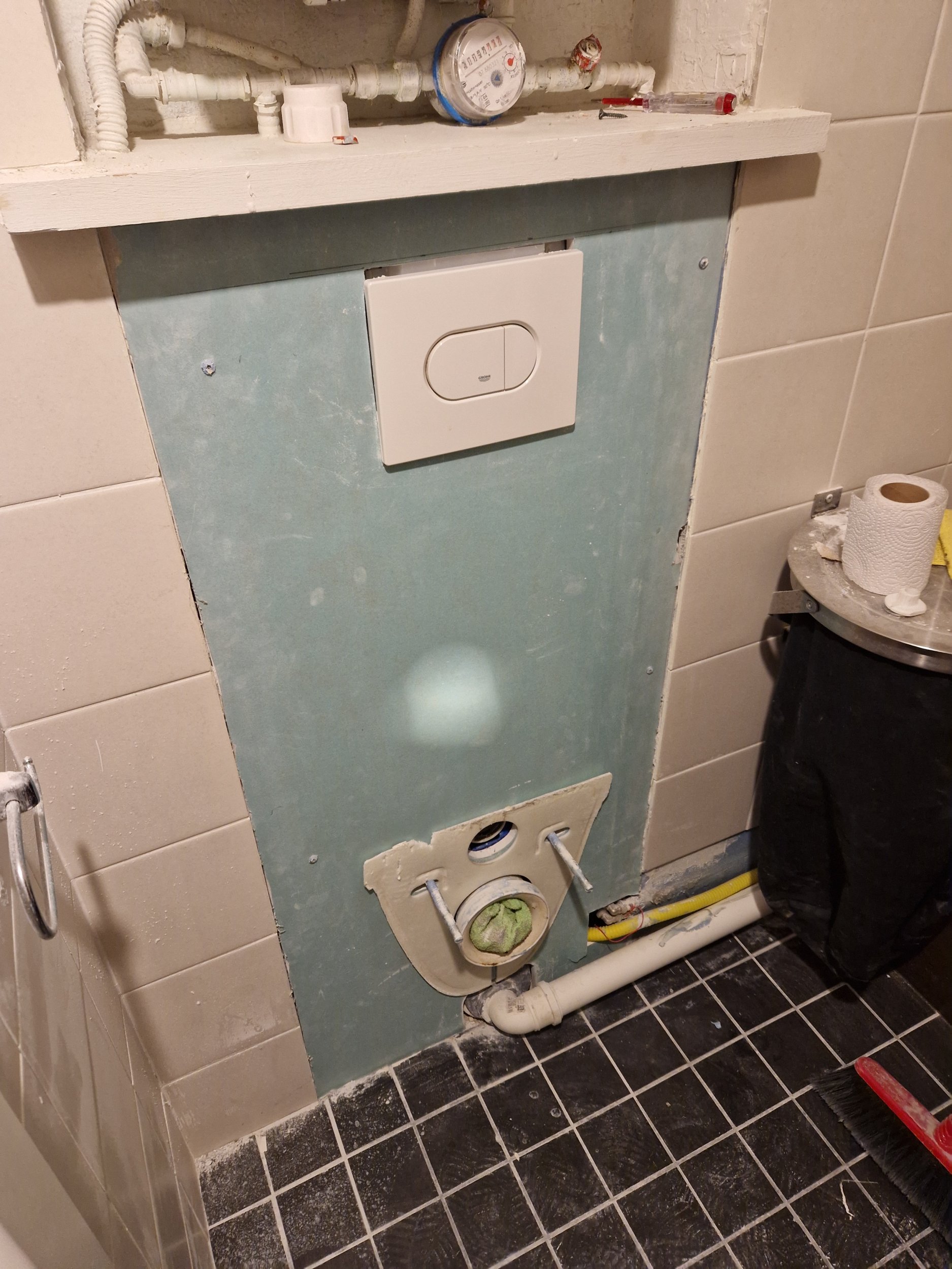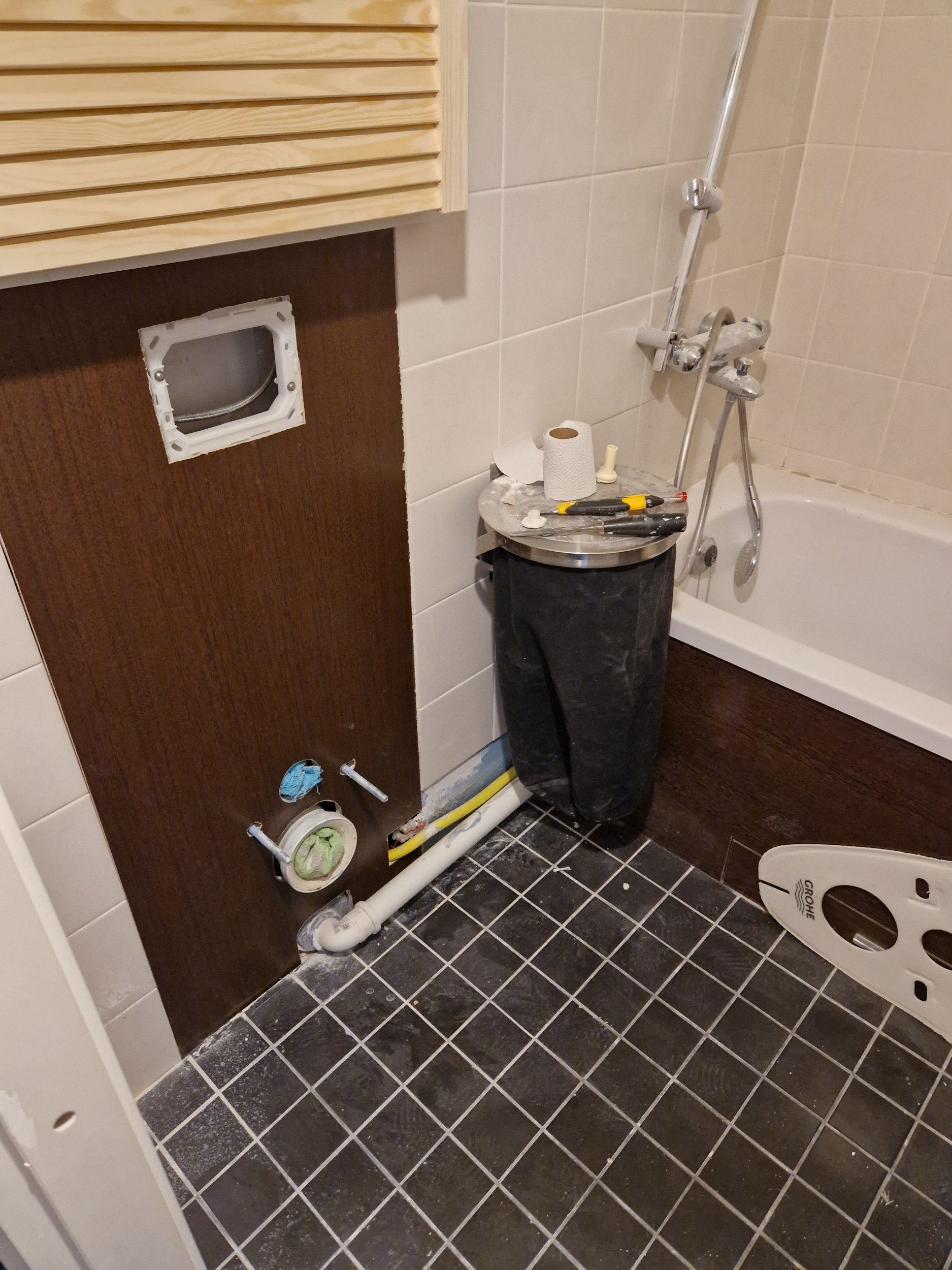 Paar aastat tagasi sai paigaldatud wc poti taha seina kipsplaat ja sinna peale HDF plaat, mis praeguseks vajaks välja vahetust. Ootan pakkumisi lahendustele (plaatimine või midagi muud).