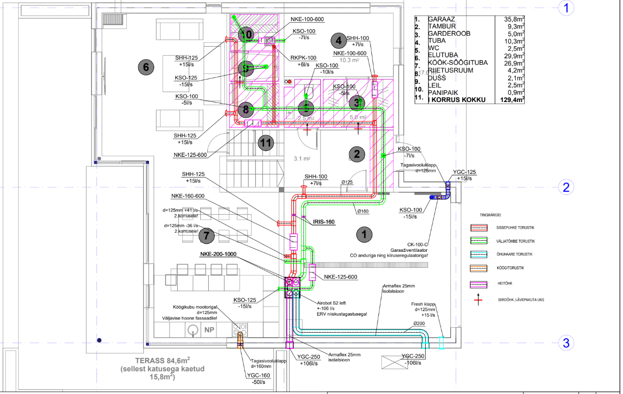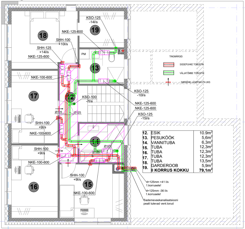 - tööde lõpus tehakse ventilatsioonisüsteemide mõõdistamine vastavalt standardile EVS-EN 12599:2012 ja tehtud tööd peavad vastama projektiga etteantud näitajatele.