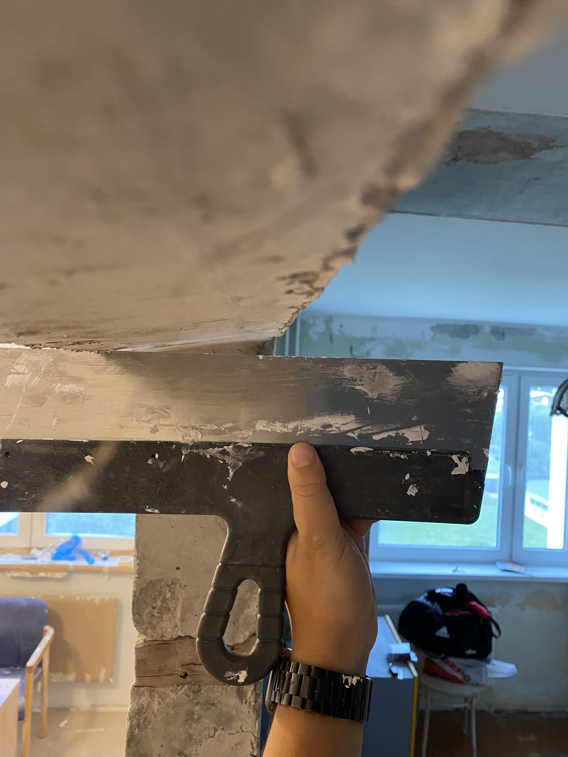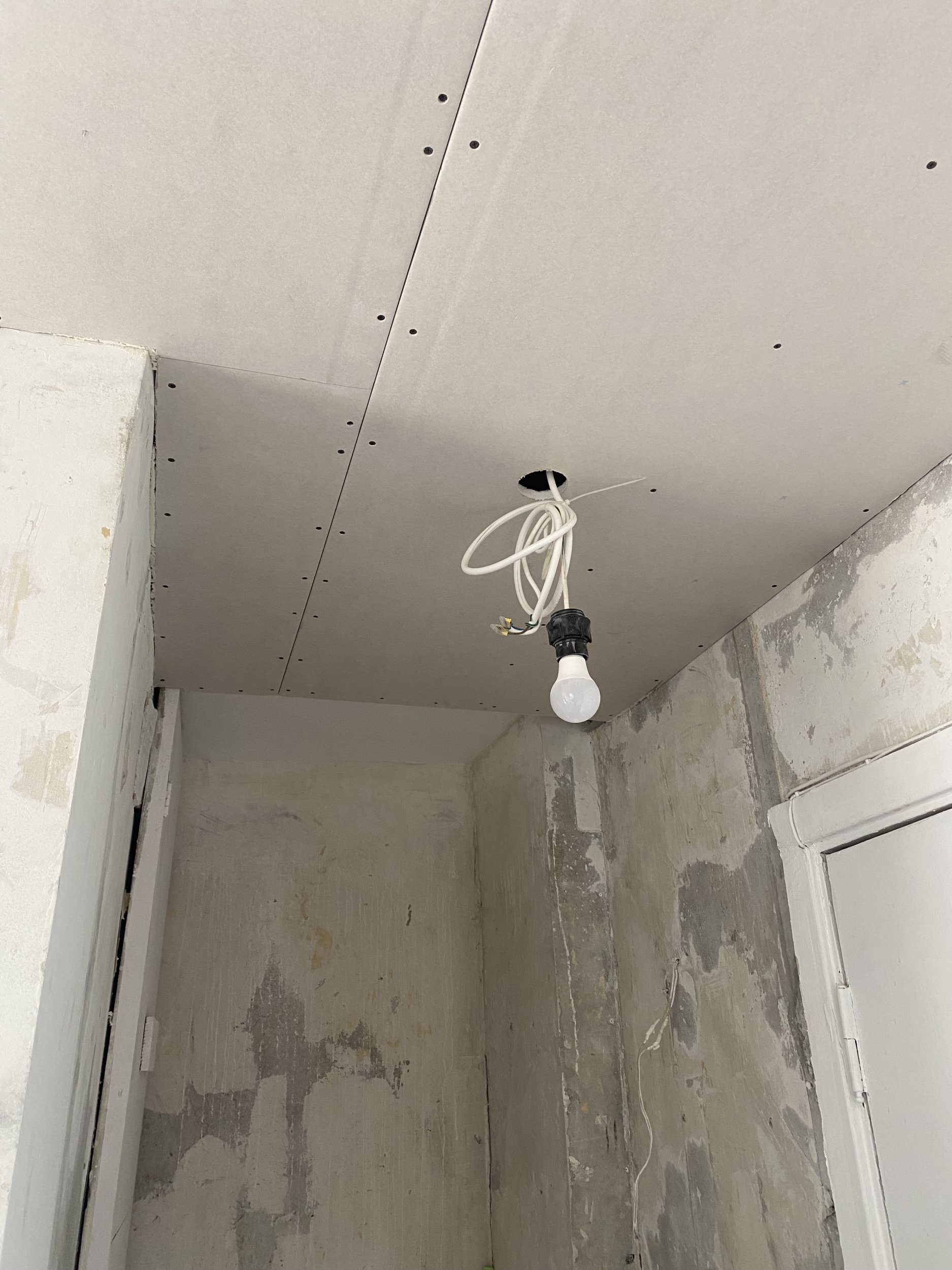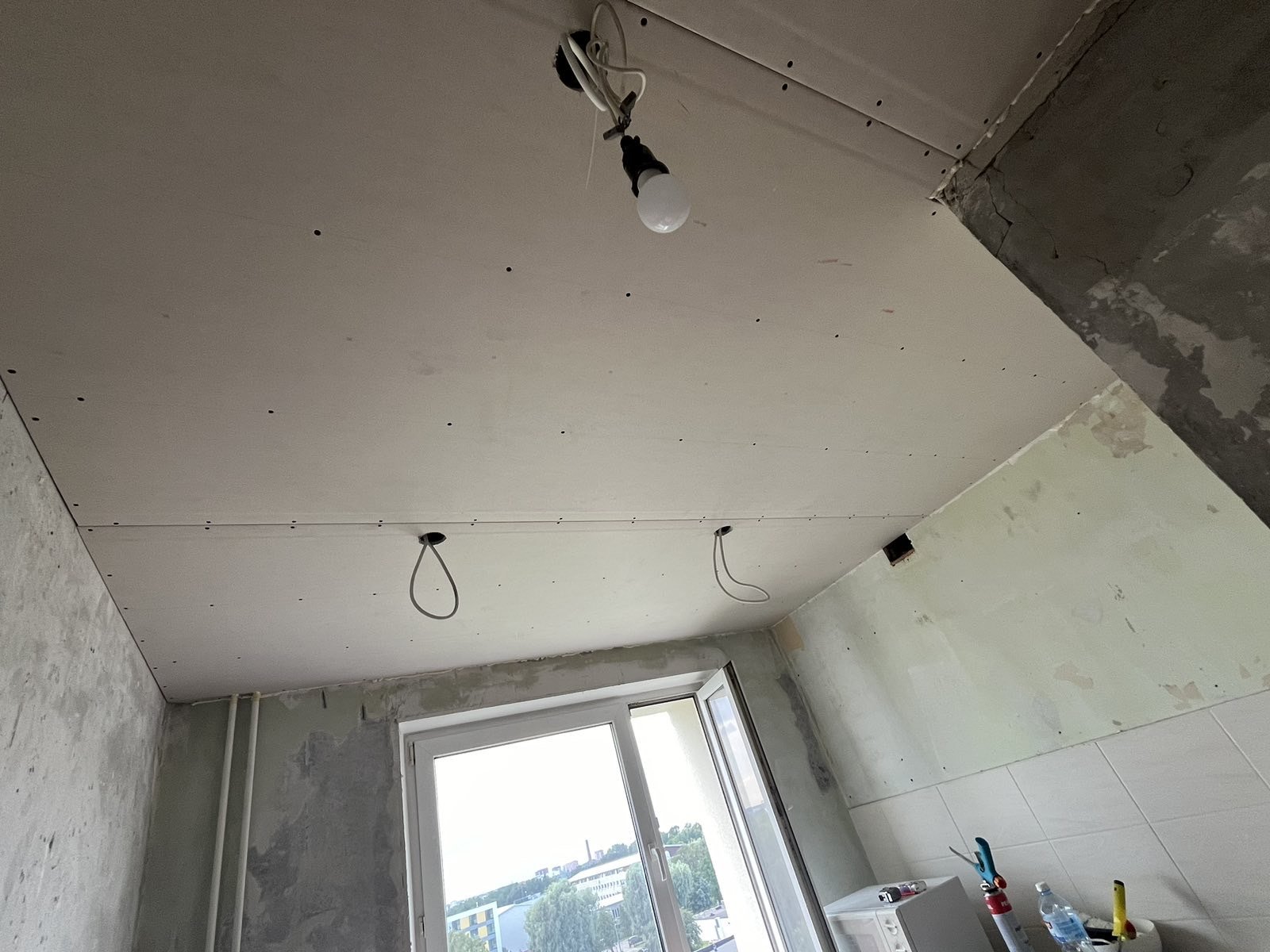Tere, on paigaldatud lakke gips. On vaja laege krohvida ja värvida, et lagi oleks täiesti valmis. Ukseääred on vaja teha ka korda. Sinna on juba paigaldatud gips, seda piltide ajal veel polnud, ehk on vaja lihtsalt krohvida nad sirgeks. Lae pindala on ligilaudu 8-9m2. Materjalide osas ka, kui keegi soovib võib ise osta või mina võin osta.