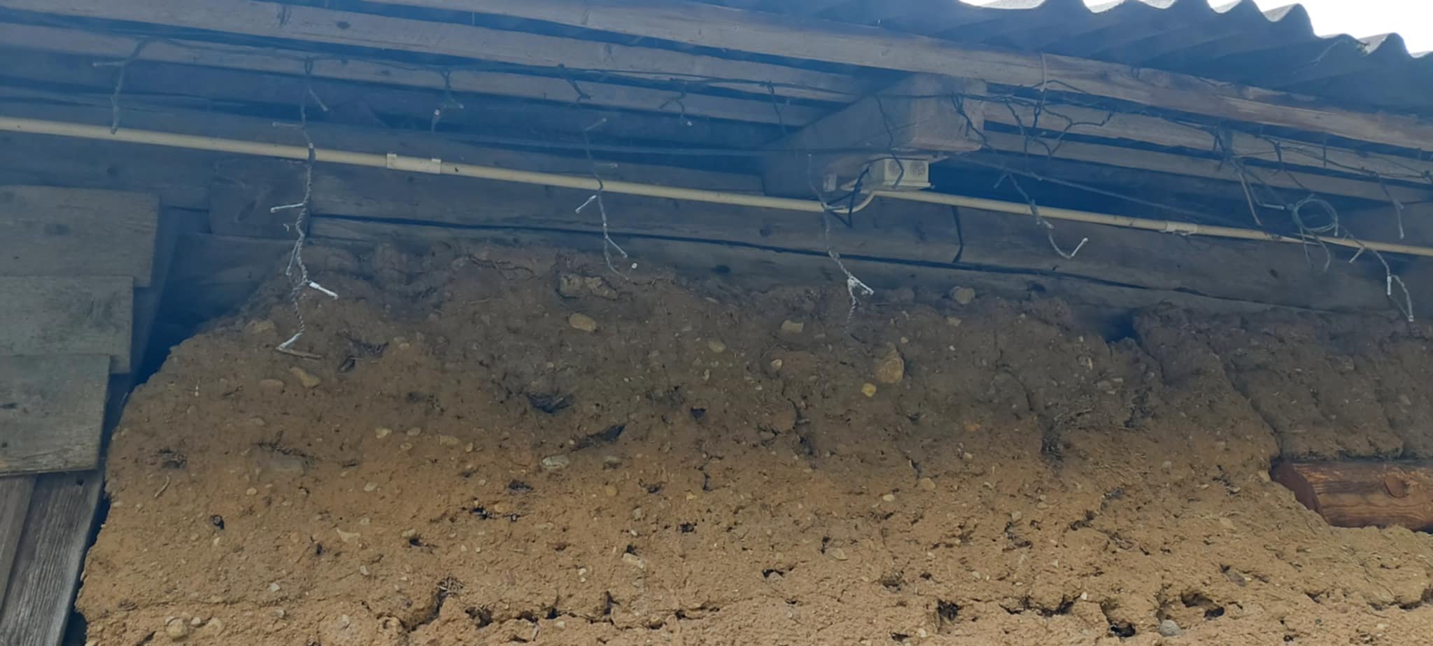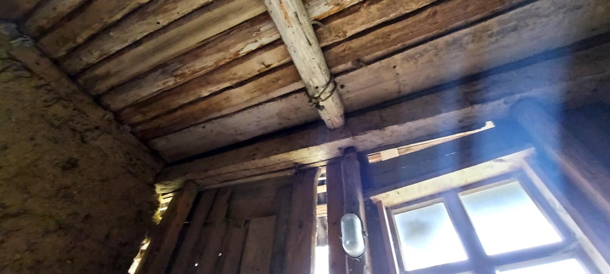 Maja on tampsavi seintega, endise lauda osas on müürlati olukord halb ja samuti on ära vajunud kuuri nurgad. Ehk siis müürlati peaks plommima/vahetama ca 10m ulatuses mõlemalt poolt ja kuuri osas tegema uue sõrestiku või olemasoleva sirgeks ajama. Maja on ca 6,5m lai. Asendama peaks kaks tala a 6,5m.