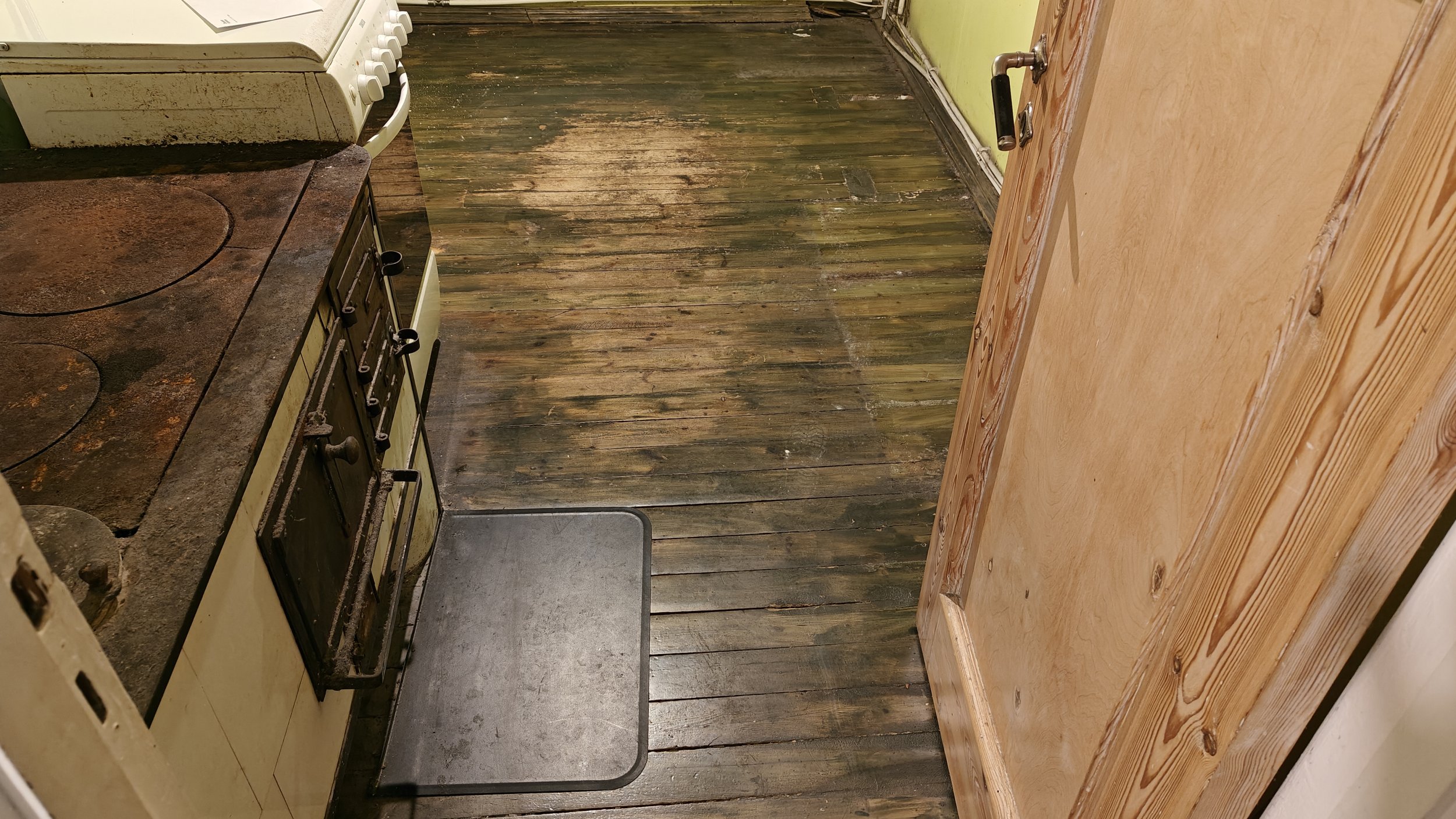 Vaja lihvida ja õlitada tuba, esiku ja köögi põrandad, kokku ca 20 m2. Toas ja köögis on vana värv eemaldatud ja hiljem lakitud, lakk osaliselt kulunud. Esikus on vana värvitud põrand, mis hetkel kaetud linoleumiga, selle eelnevalt eemaldame.