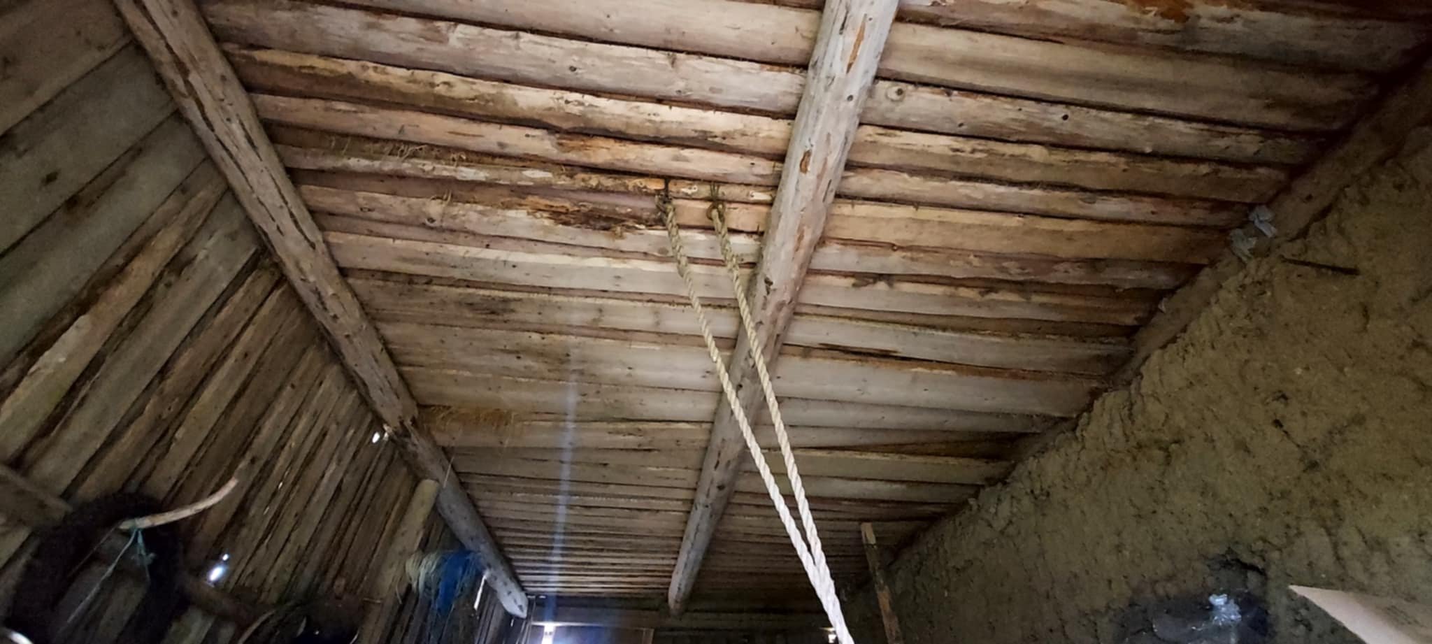 Maja on tampsavi seintega, endise lauda osas on müürlati olukord halb ja samuti on ära vajunud kuuri nurgad. Ehk siis müürlati peaks plommima/vahetama ca 10m ulatuses mõlemalt poolt ja kuuri osas tegema uue sõrestiku või olemasoleva sirgeks ajama. Maja on ca 6,5m lai. Asendama peaks kaks tala a 6,5m.