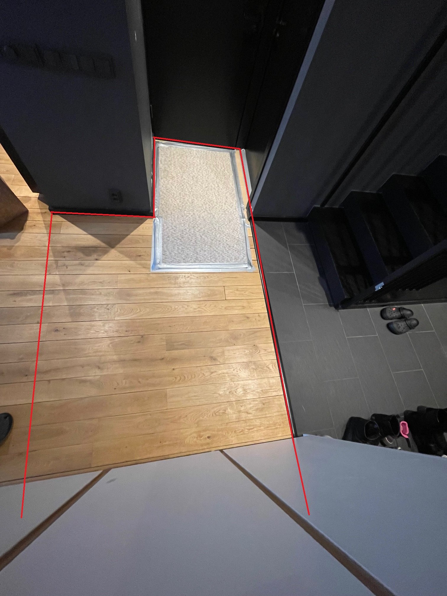 Töö sisuks on esiku põranda plaatimine. Plaaditava põranda pind on veidi alla 6 m2 ning tähistatud kuulutusele lisatud pildil punasega. Plaadid on suurusega 60 x 30 cm. Plaatide asetus peab jätkama olemasolevat mustrit.