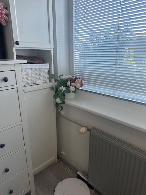 Oleks vaja olemasolev radiaator eemaldada ning panna uus (laiusega 60 cm või 80, kui radiaator on väga õhuke) sellesse seina, kus hetkel on pildil nähtav kõrge kapp, kuna akna asemele tuleb uks. Seinast tulevad radiaatori torud on seetõttu vaja saada ka pisut enam vasakule. Tegemist on eramajaga ja kütte ja vee kinnikeeramine ei ole probleem.
