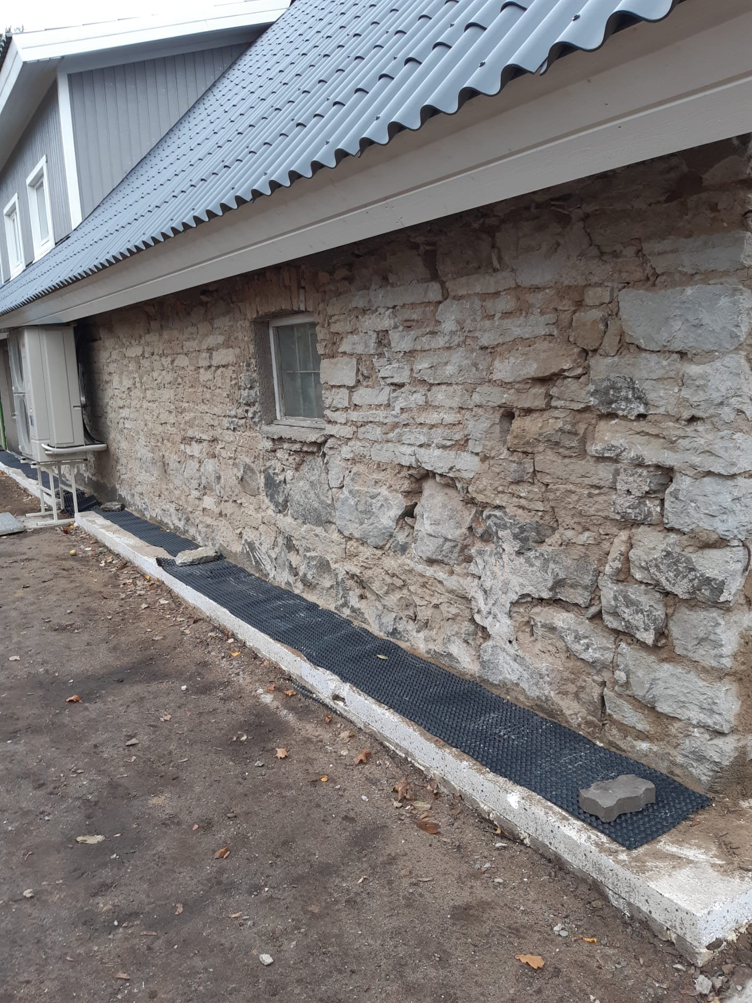 - Kahe terrassiukse tegemine (mõõdud ca 880mmx2000mm) ja ühe akna tegemine (mõõdud 1200mmx1200mm). Koos kaarsillutise paigaludsega tellistega, mis oma korda kaetud paekiviga.