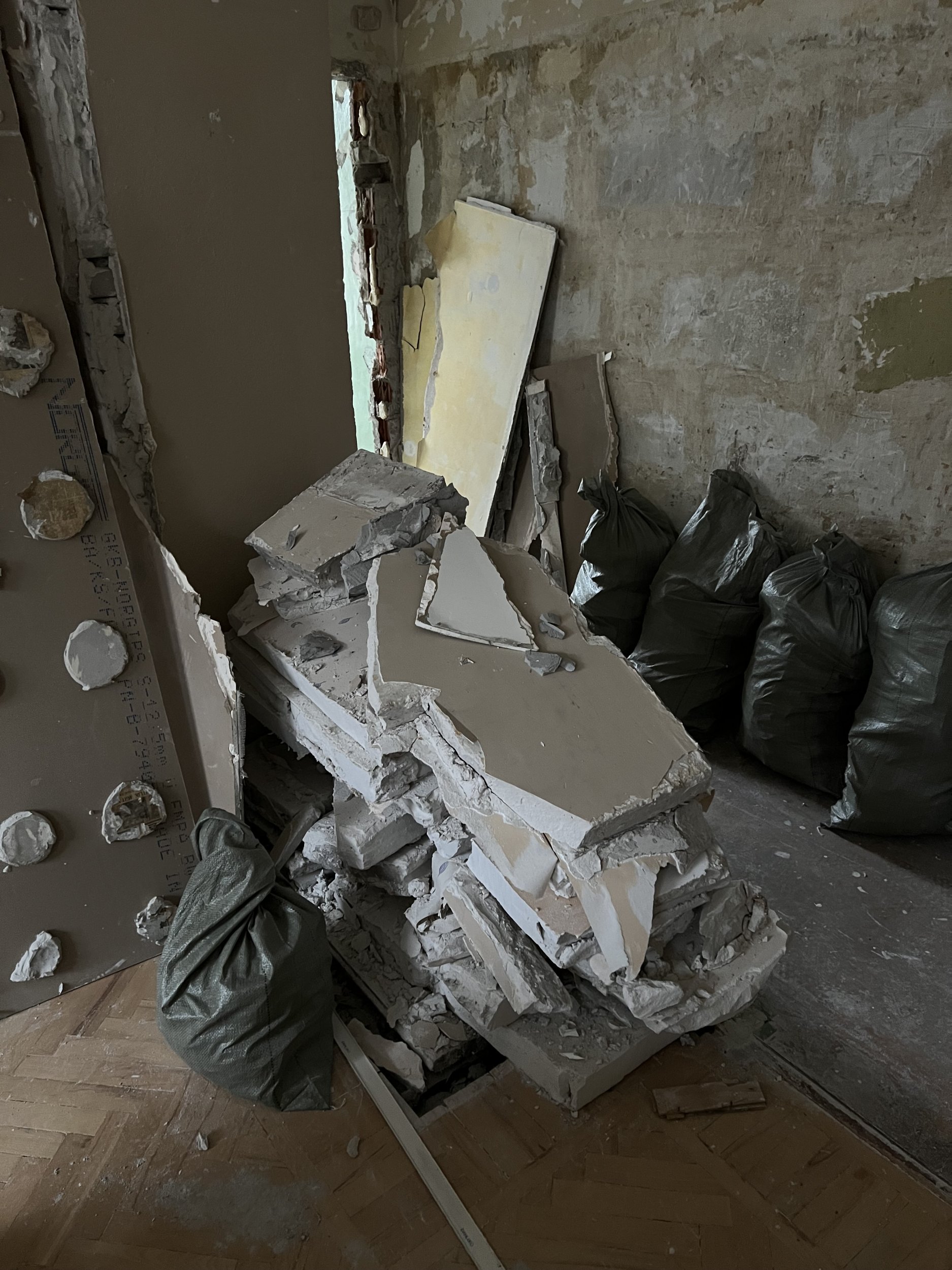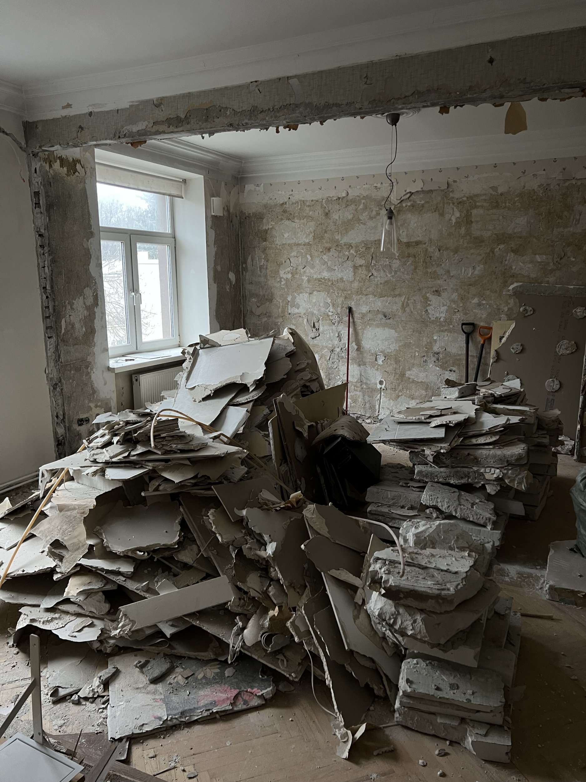 Piltidel oleva kivi, kipsi ja prügikottide ära vedu. Kotte on kokku 35tk, mis sisaldab kipsi, kivi ja plaadi jäätmeid.