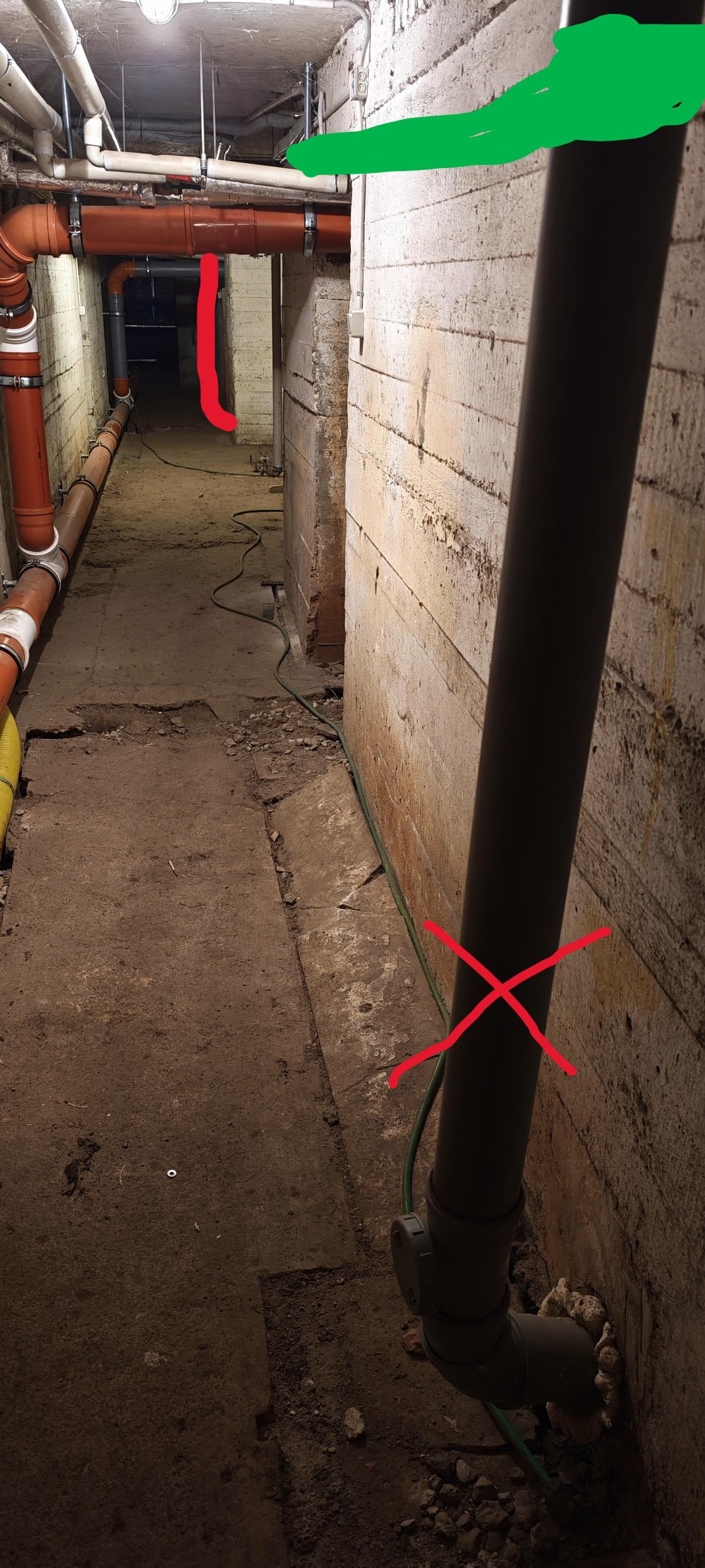 Hetkeseisuga maja katuse pealt vesi liigub alla kahe sadeveepüstaku kaudu. Need jäävad kohale, neid ei puutu. Keldrist läheb välja kaks horisontaaltoru kahe erinevate kaevude sisse. Soov suunata üks toru teise juurde, ühendada neid ning jätta ainult üks horisontaaltoru mis läheb majast välja. Mõlemad püstakud on keldris ühes koridoris ning on olemas sirge nähtavus. Horisontaaltoru vajab asendamist kaevuni ning Tallinna Vesi nõuab selle jaoks projekti ning kooskõlastamist.