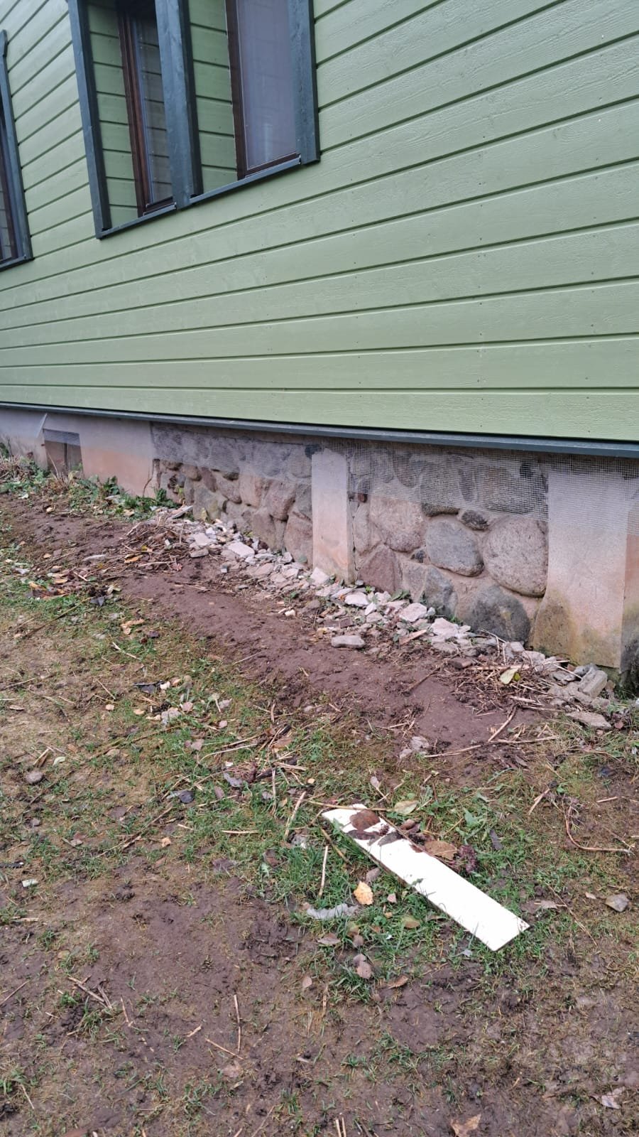 2. Purvahule karkassi ehitus ca 4-5 päeva 3. Pur Vaht (suletud poor) 4. SBS aluskiht vertikaalselt peale. Ca 1-2 päeva 5. Sokliplaadi paigaldus koos liistudega. NB! Hind sisaldab materjale! |