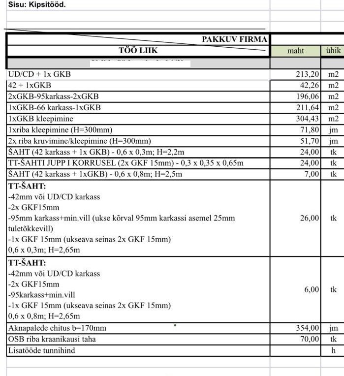 | Ehitusmaterjalid: | Töö tellija poolt |