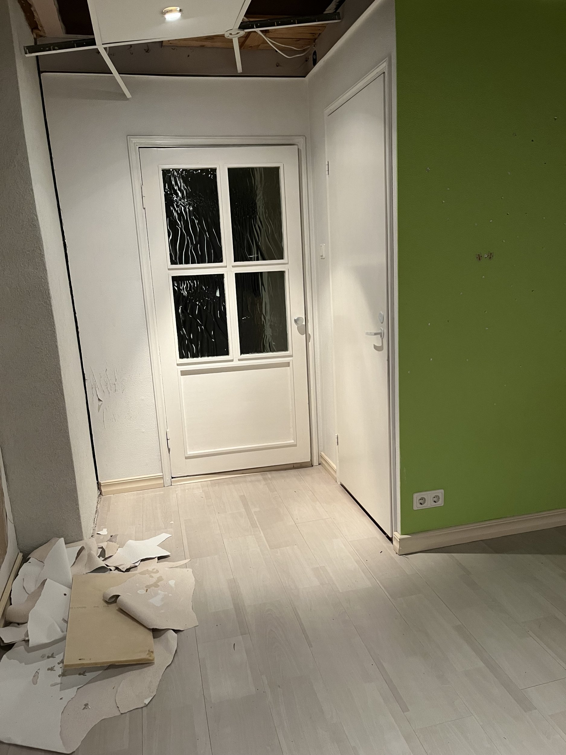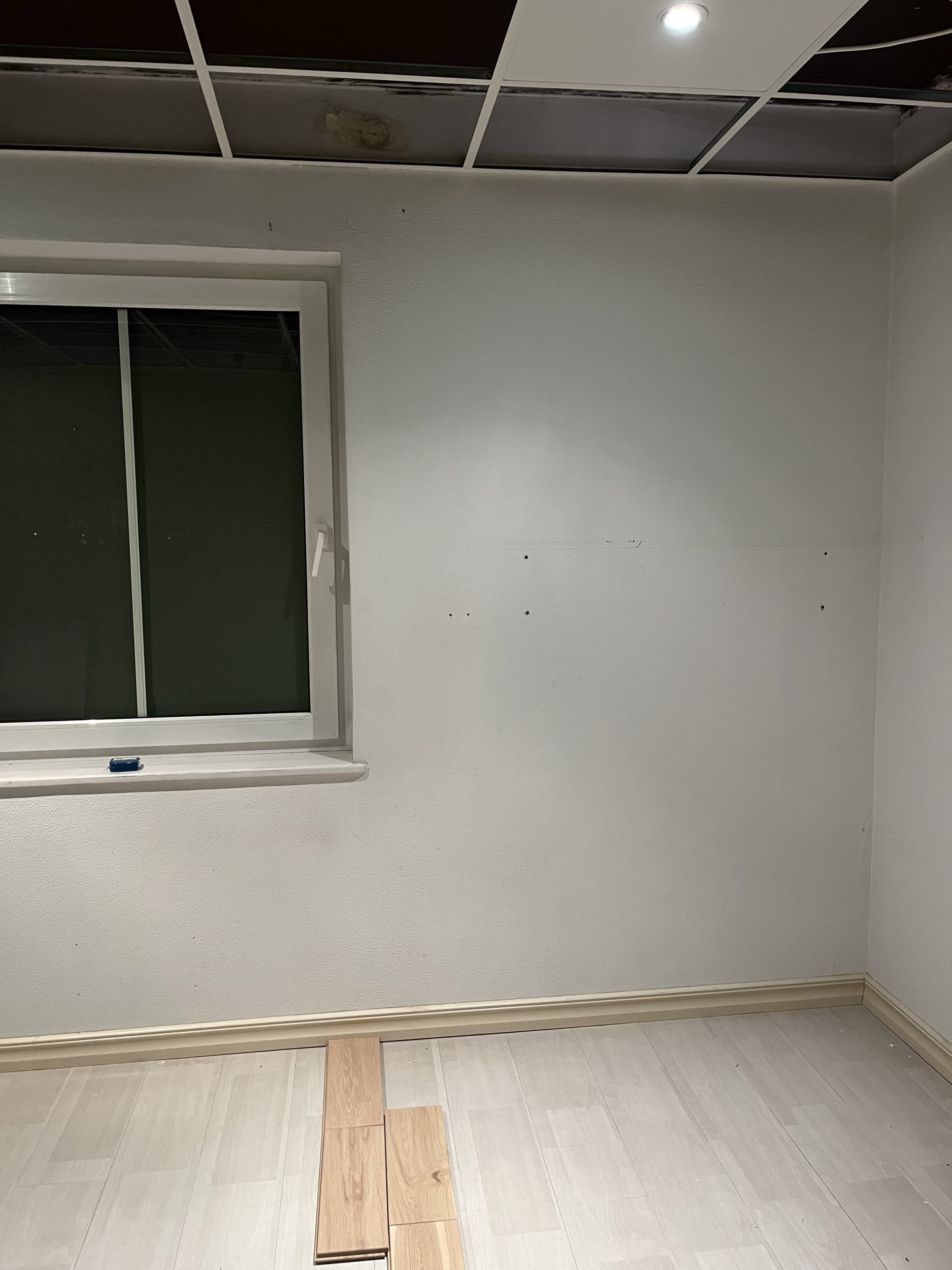 Lae voodrilaua paigaldamine ja värvimine. Enne oli kontori stiilis ripplagi.