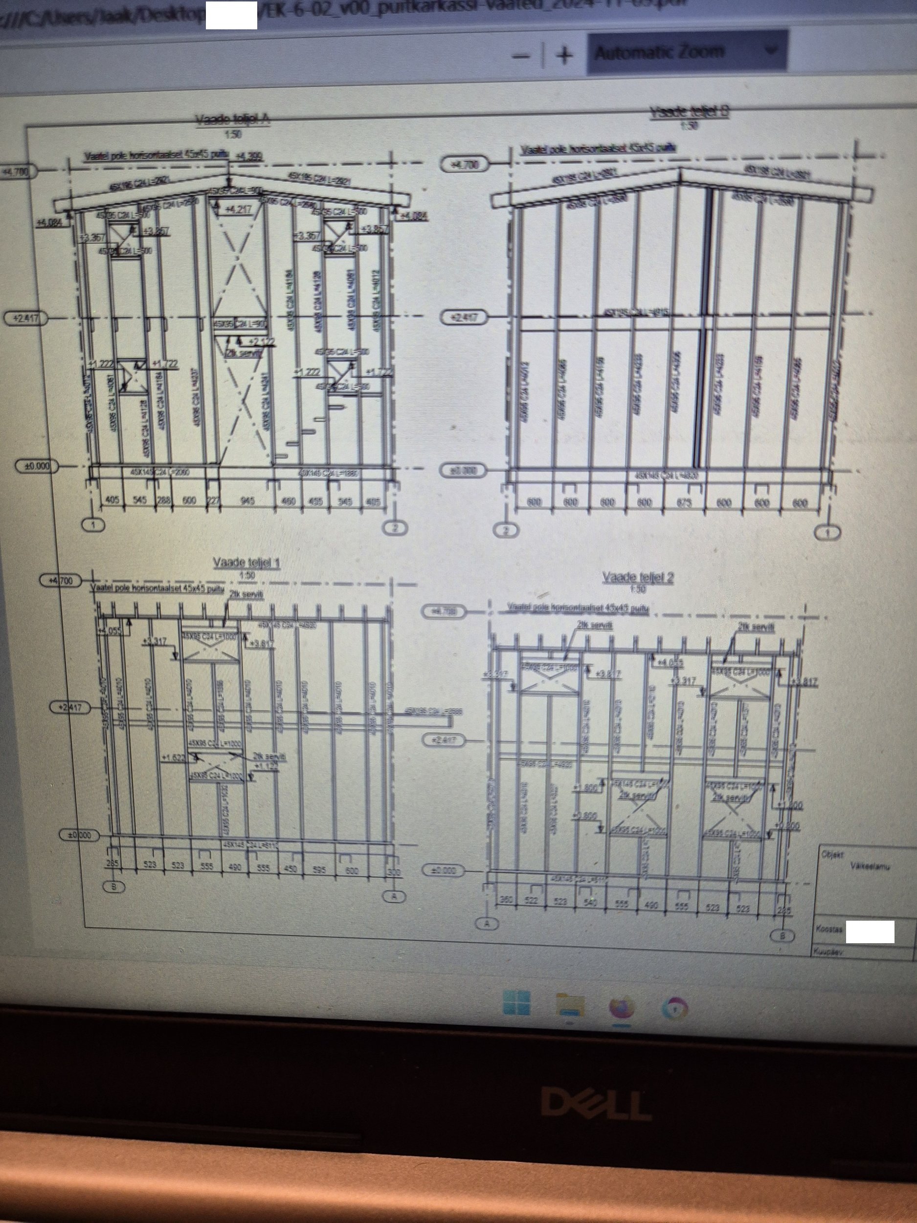 Hetke pakkumine tehtud postvundamendi puurimisele ja valamisele, ei sisalda ehitusmaterjale. Sisaldab puurimistehnikat ja tööd. Meeleldi ehitaksime ka ülejäänud osa aga selle joonise järgi raske täpset hinda teha, palju erinevaid faktoreid mida hetkel ei tea( teiepoolsed soovid kinnitamisele jne). Oleme pika kogemuste pagasiga ja töö kiire.