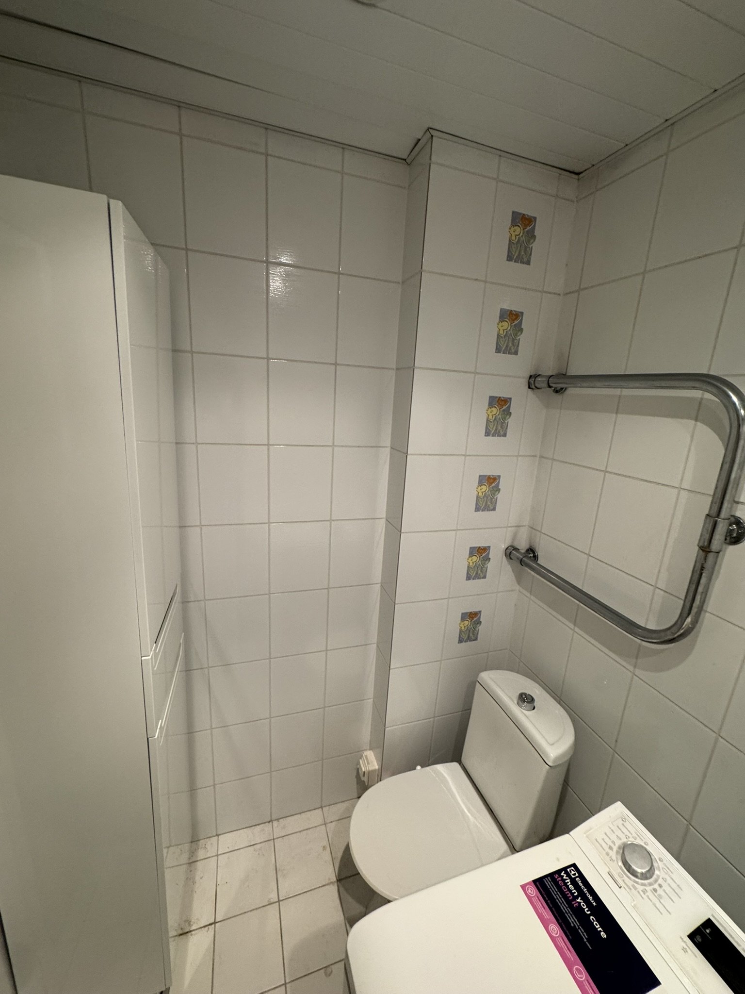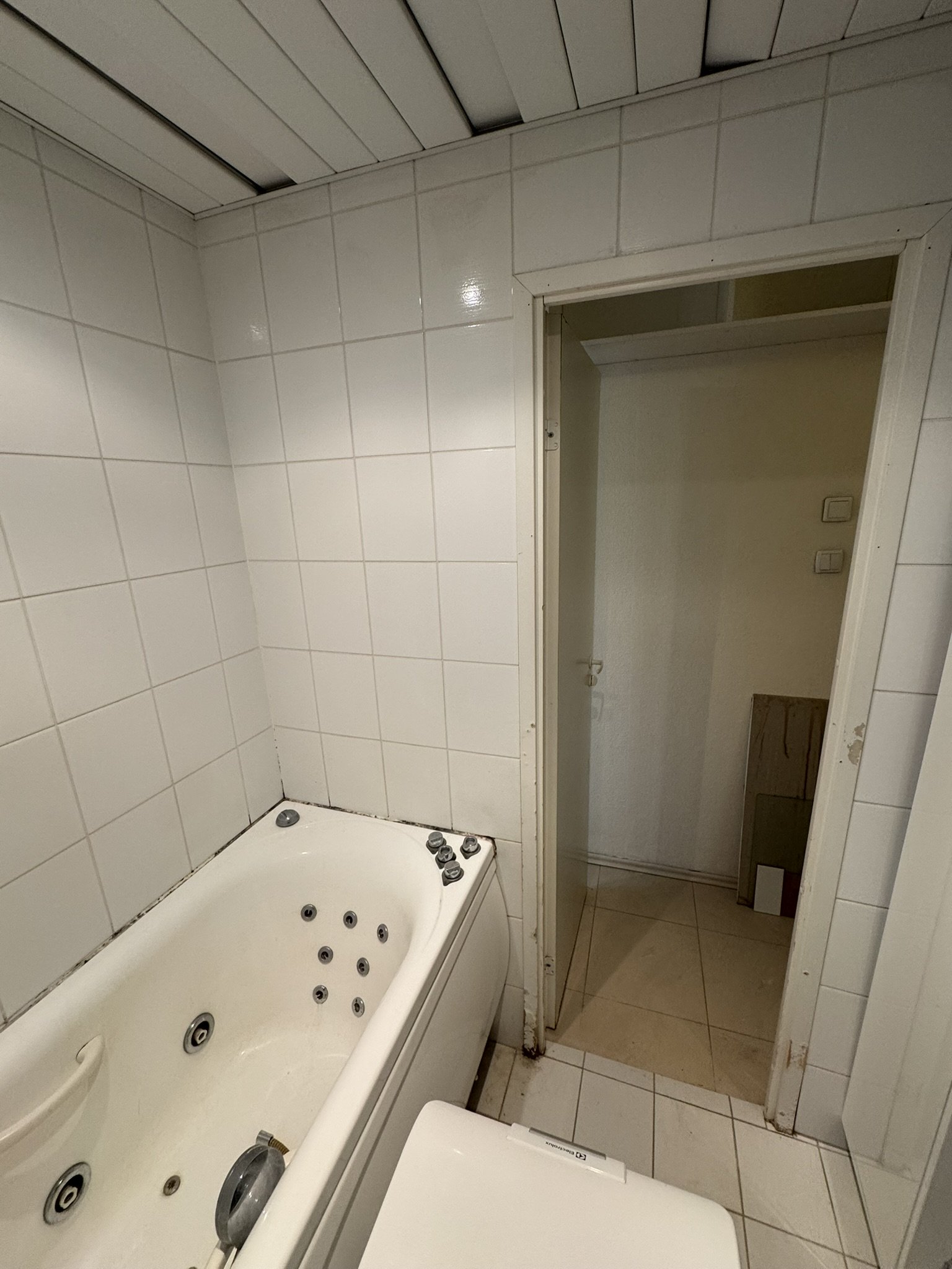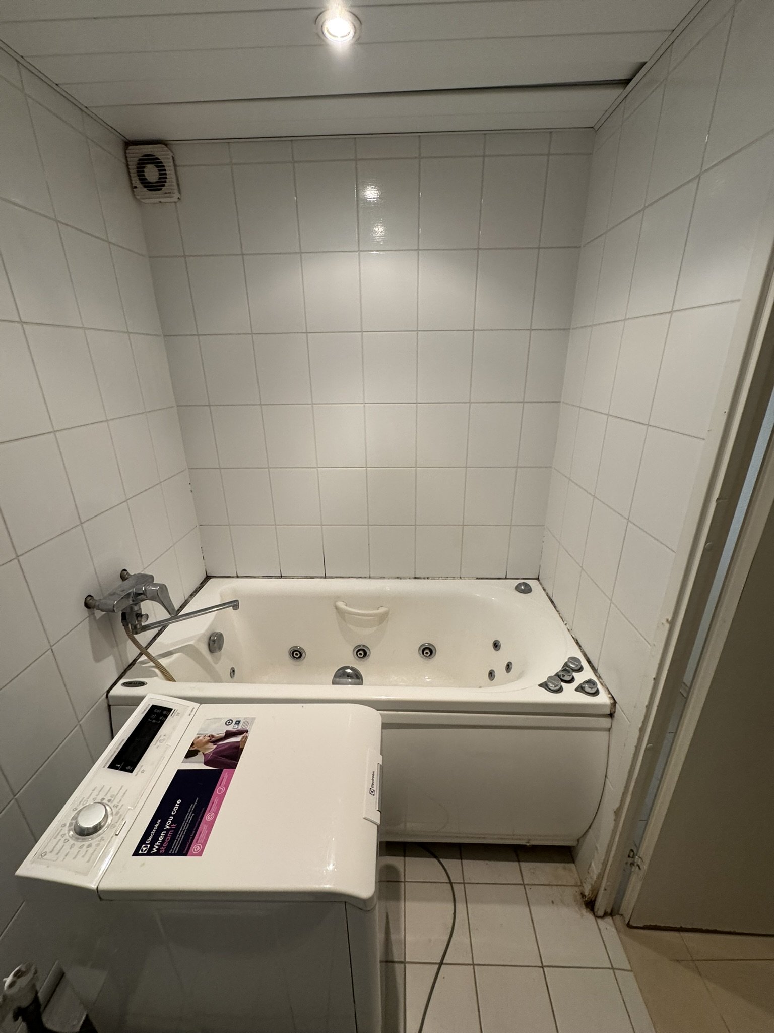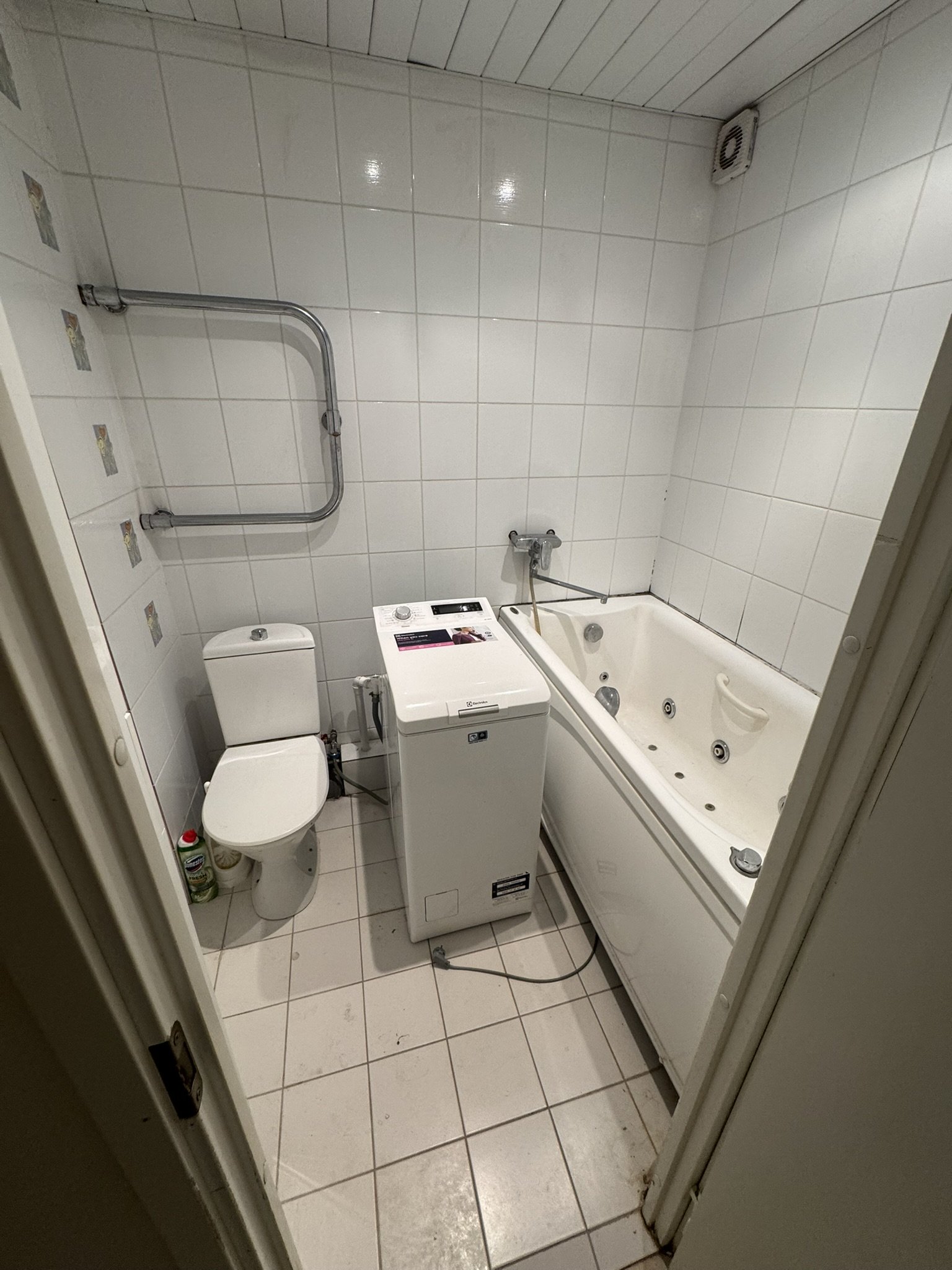 Tavaline 5 kordne 1968 ehitatud paneelelamu, esimese korruse vannituba. Vaja on asendada vann dušinurgaga, viia pesumasin vanni jalutsi kohale (uksest sisenedes paremale), ning pesumasina praegusele asukohale tekitada segisti + kraanikauss. Ruumil on elektriline põrandaküte ja elekter ripplae peal. Vanni tagune ala on plaaditud. Ukseliistud on saanud niiskust ning vajavad vahetust. WC poti tagune plaaditud aste vajab lõpetamist. Piltidel näha olev kapp vajab seina külge kinnitamist.