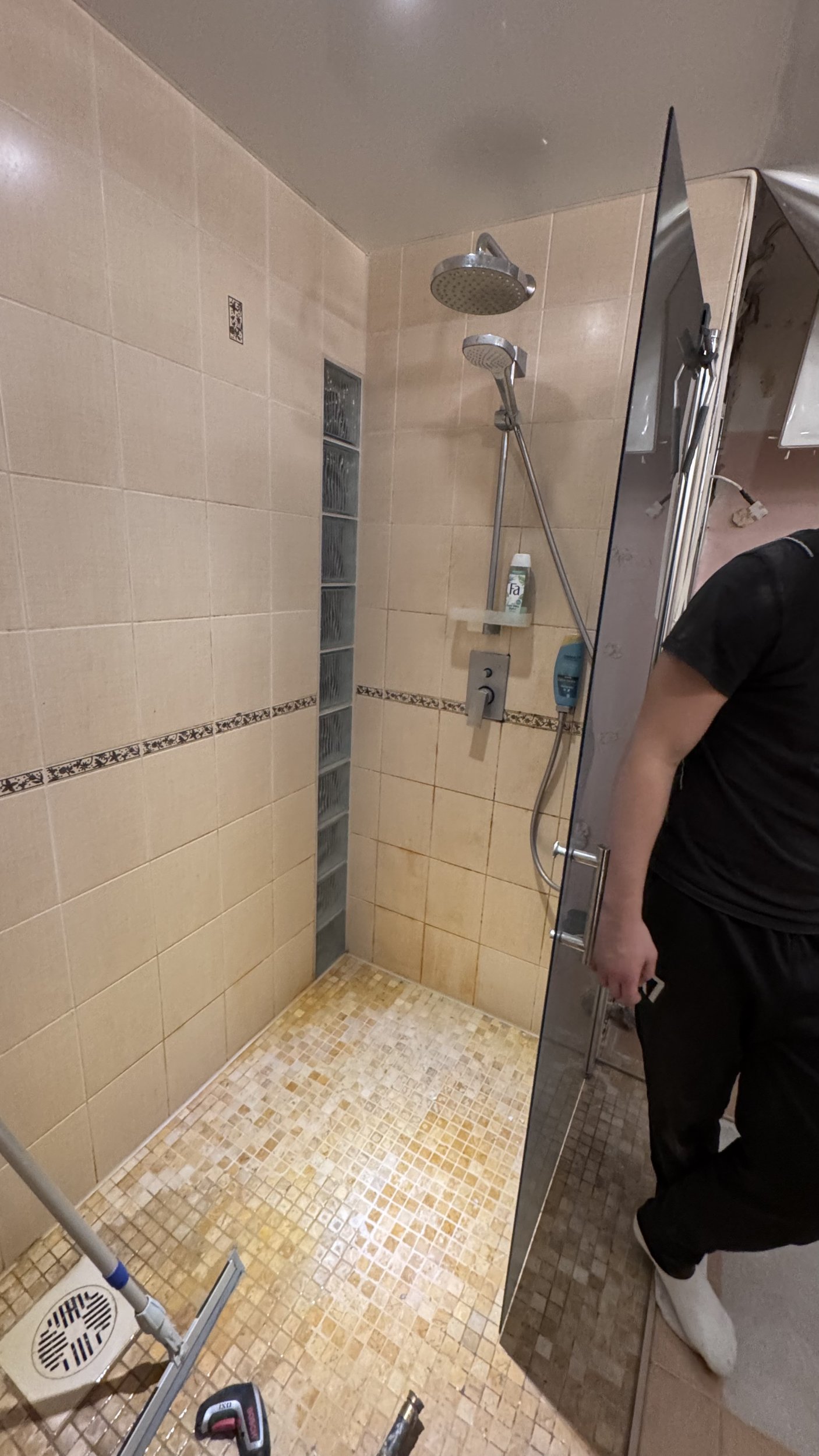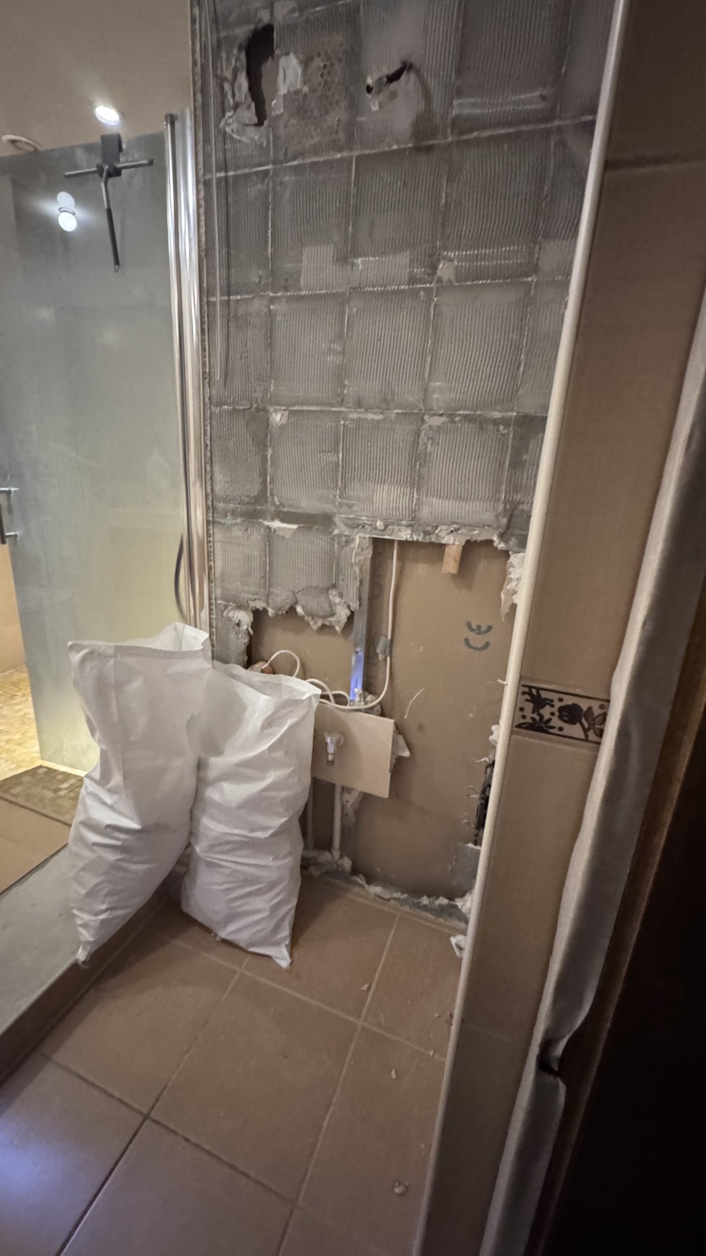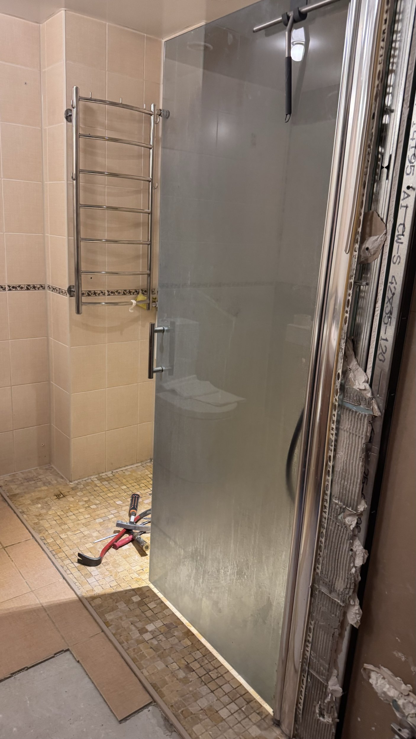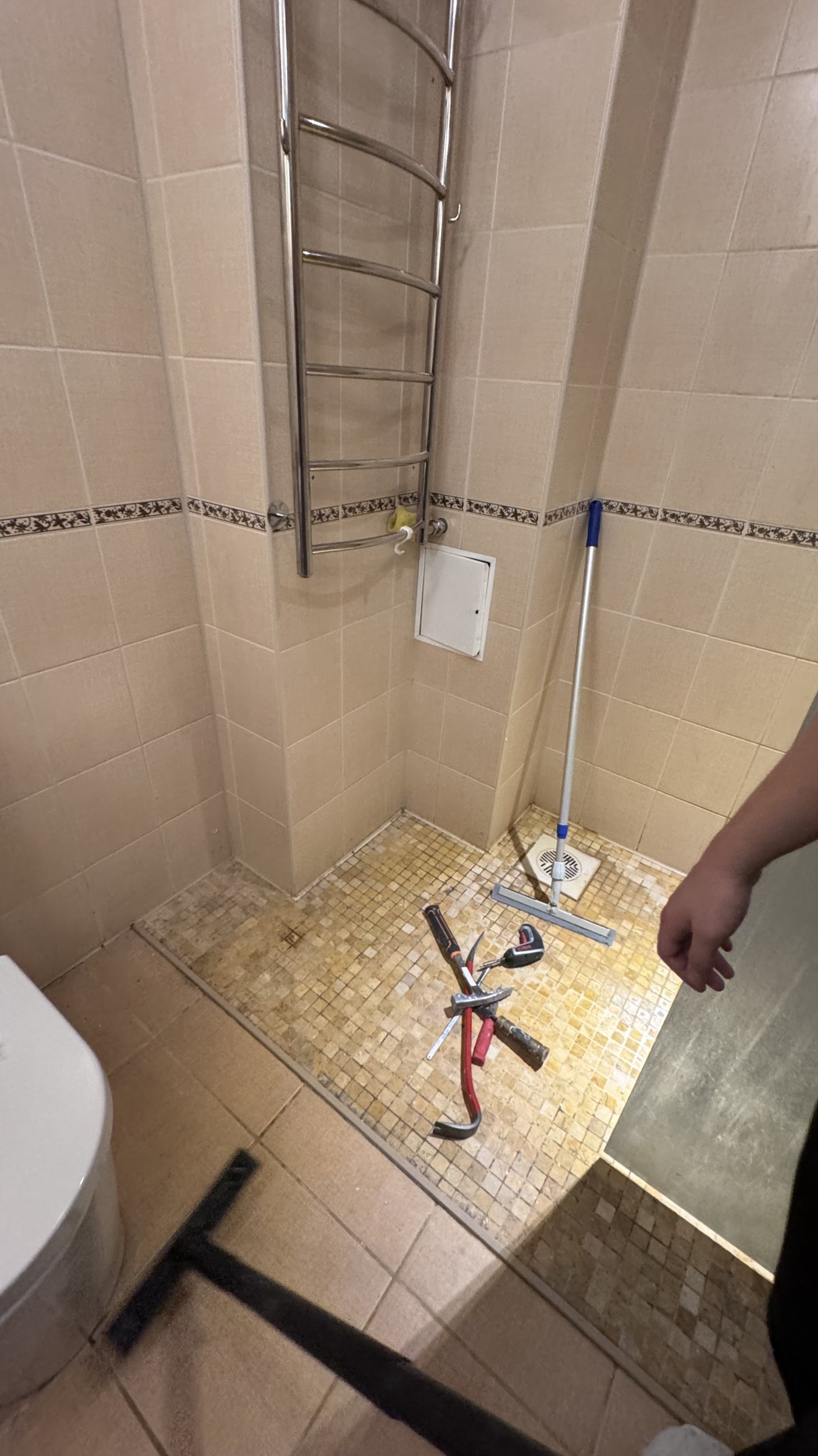 Выравнивание пола, установка трапа, гидроизоляция стен и пола, установка плитки стен и пола, затирка и силикон – 30 kv metra