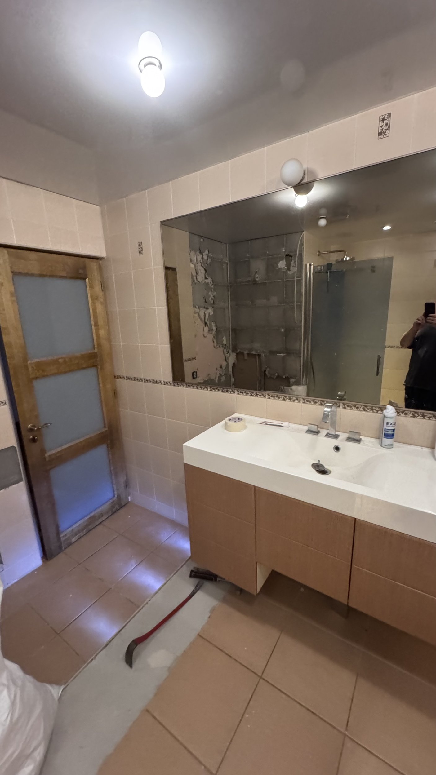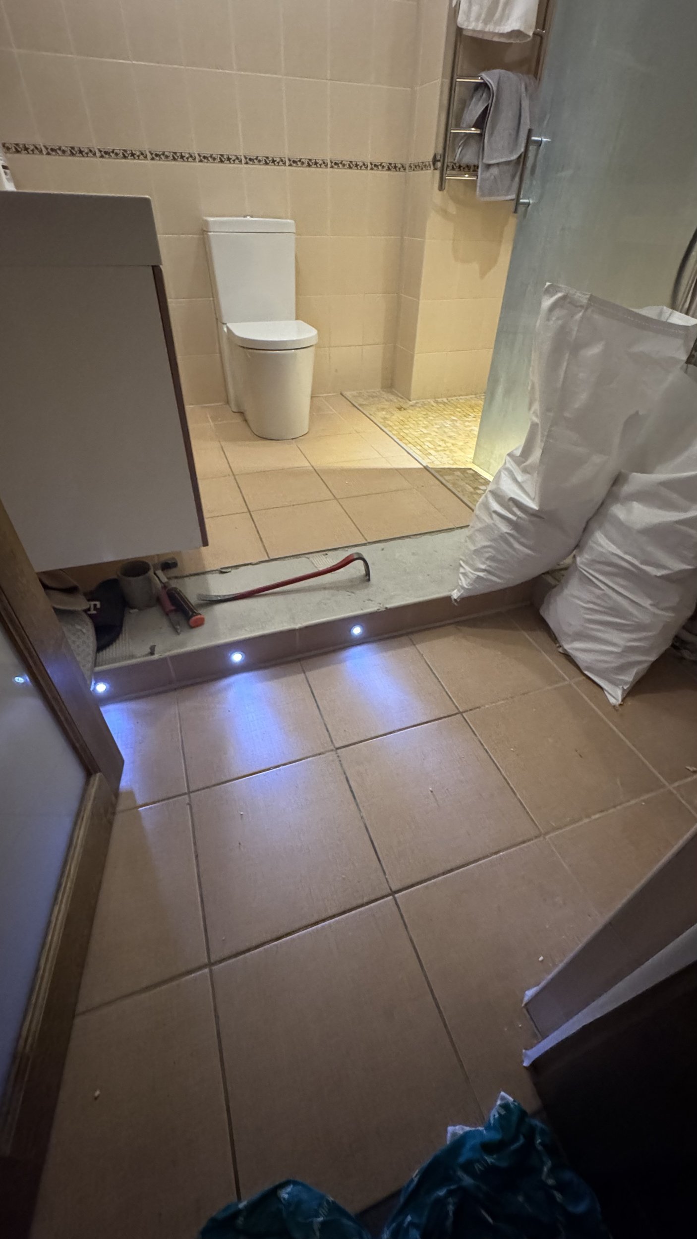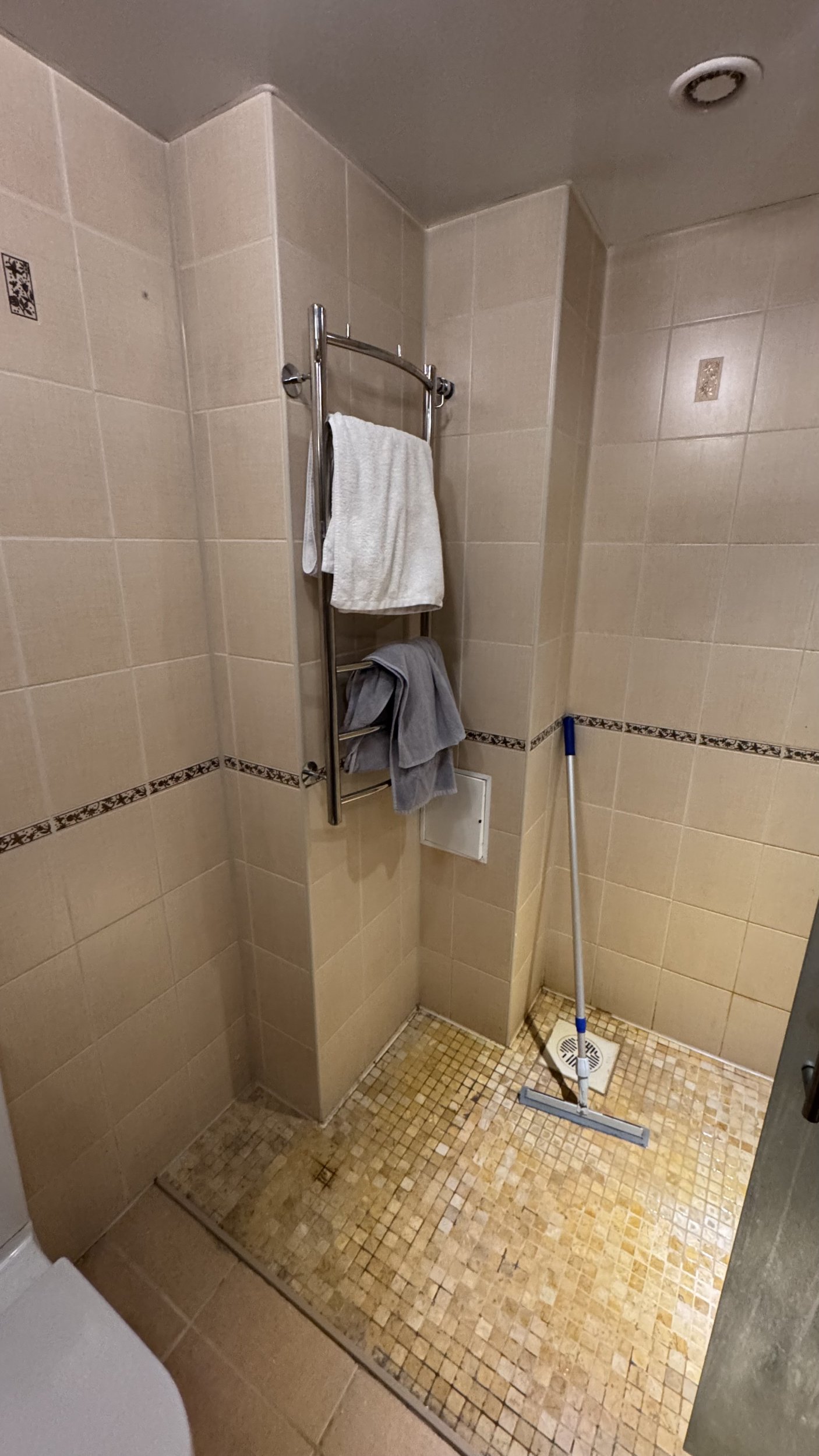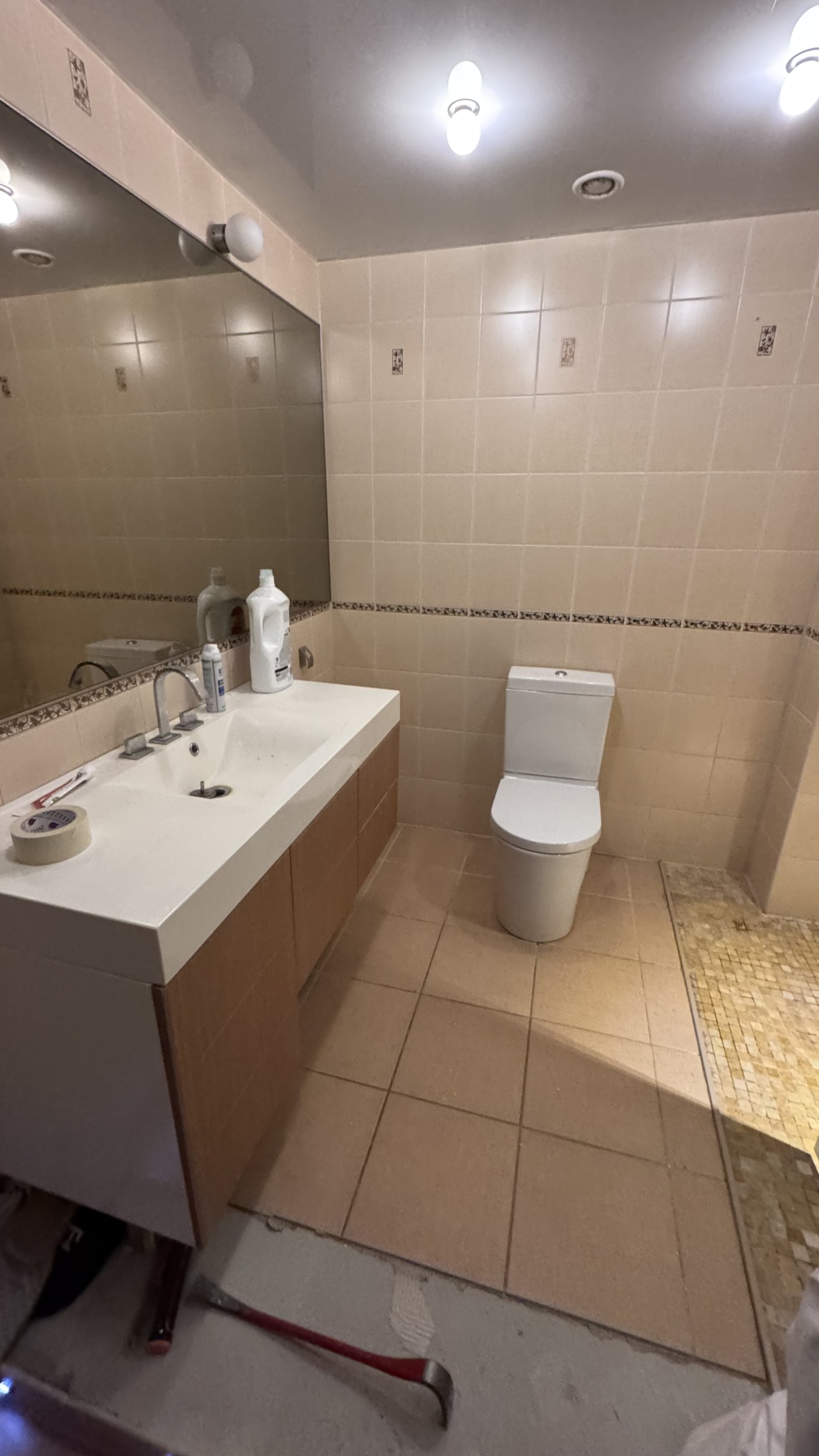 Выравнивание пола, установка трапа, гидроизоляция стен и пола, установка плитки стен и пола, затирка и силикон – 30 kv metra