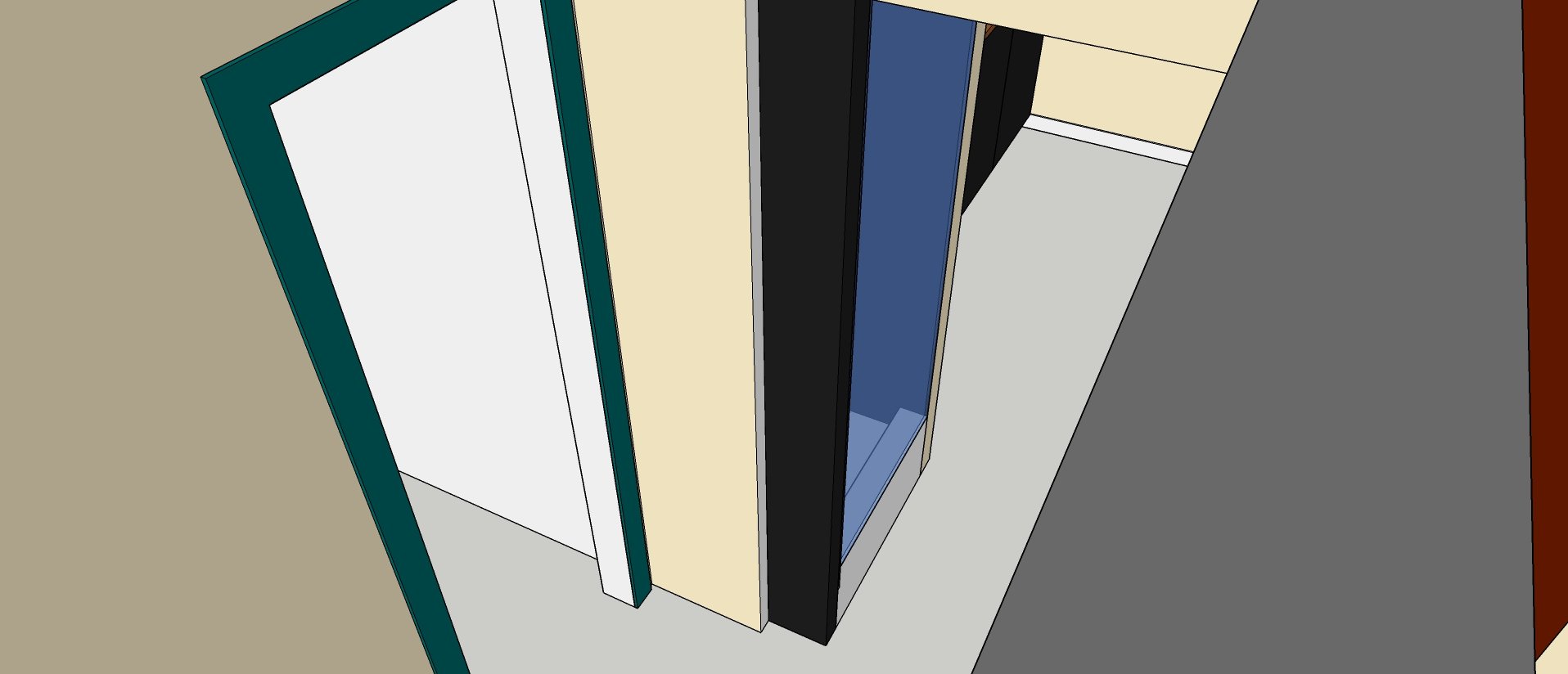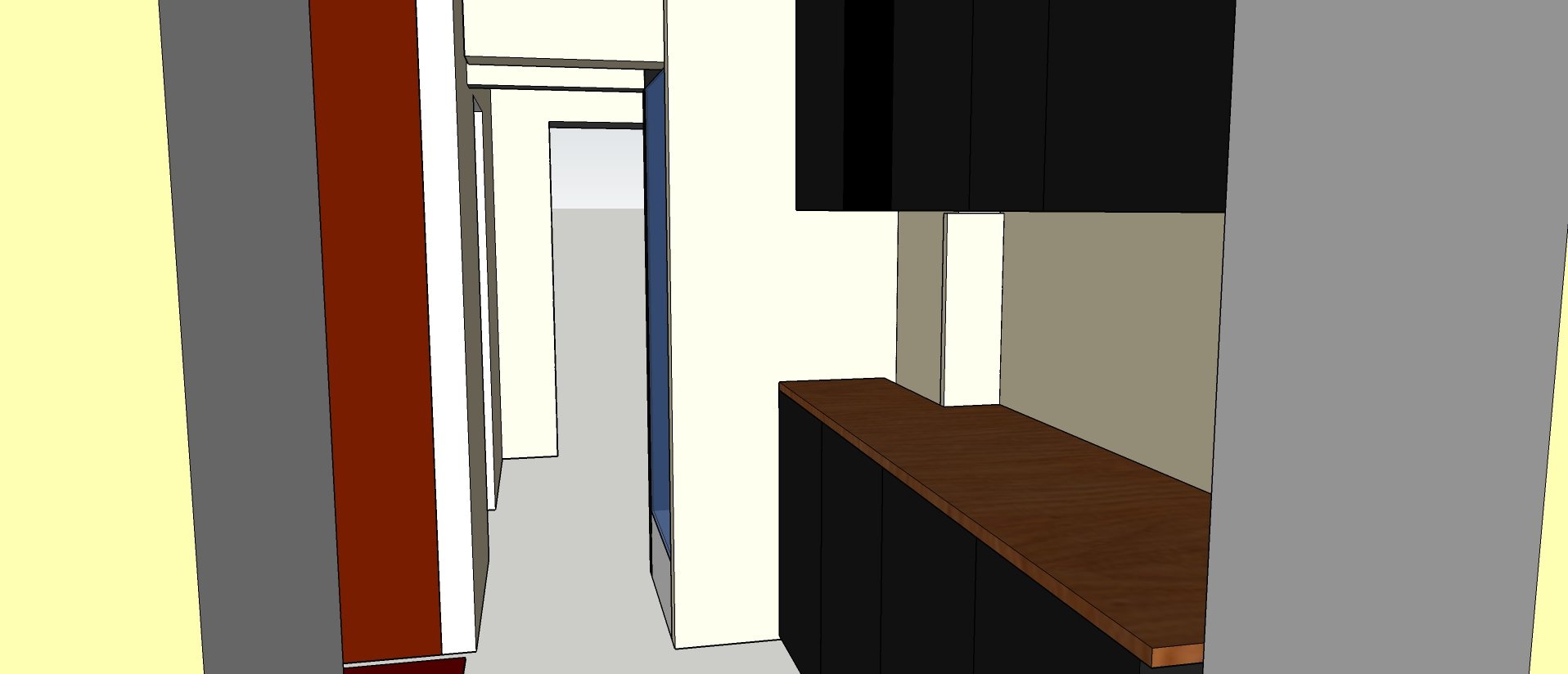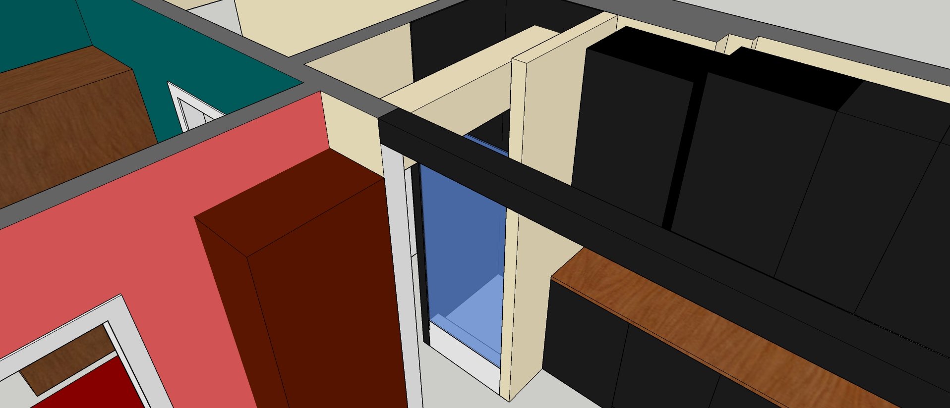 Meister peaks kohapeal vaatama-hindama, kas kaks olemasolevat seina (musta plaadiga kaetud) saab säilitada või mitte.