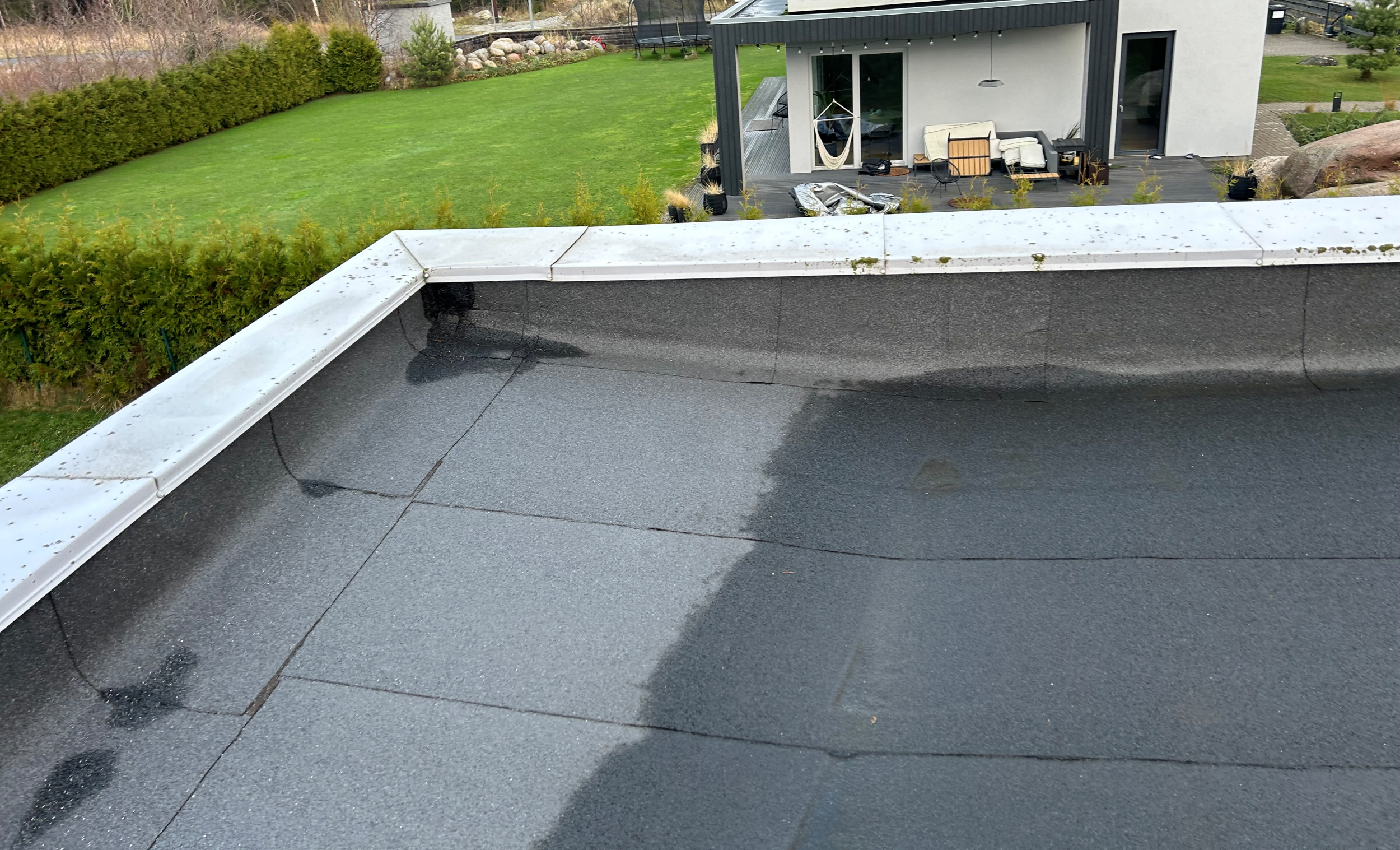Katus lekib garaazi tagaseina äärest. Vett tuleb harva, isegi suure vihmaga ja tuulega on kõik kuiv. Lekib vist mingi kontreetse tuule suunaga vms. Bituumen katus mille all on vineer, lisasin ka ehituse pildid. Lekke põhjus või koht pole selge.