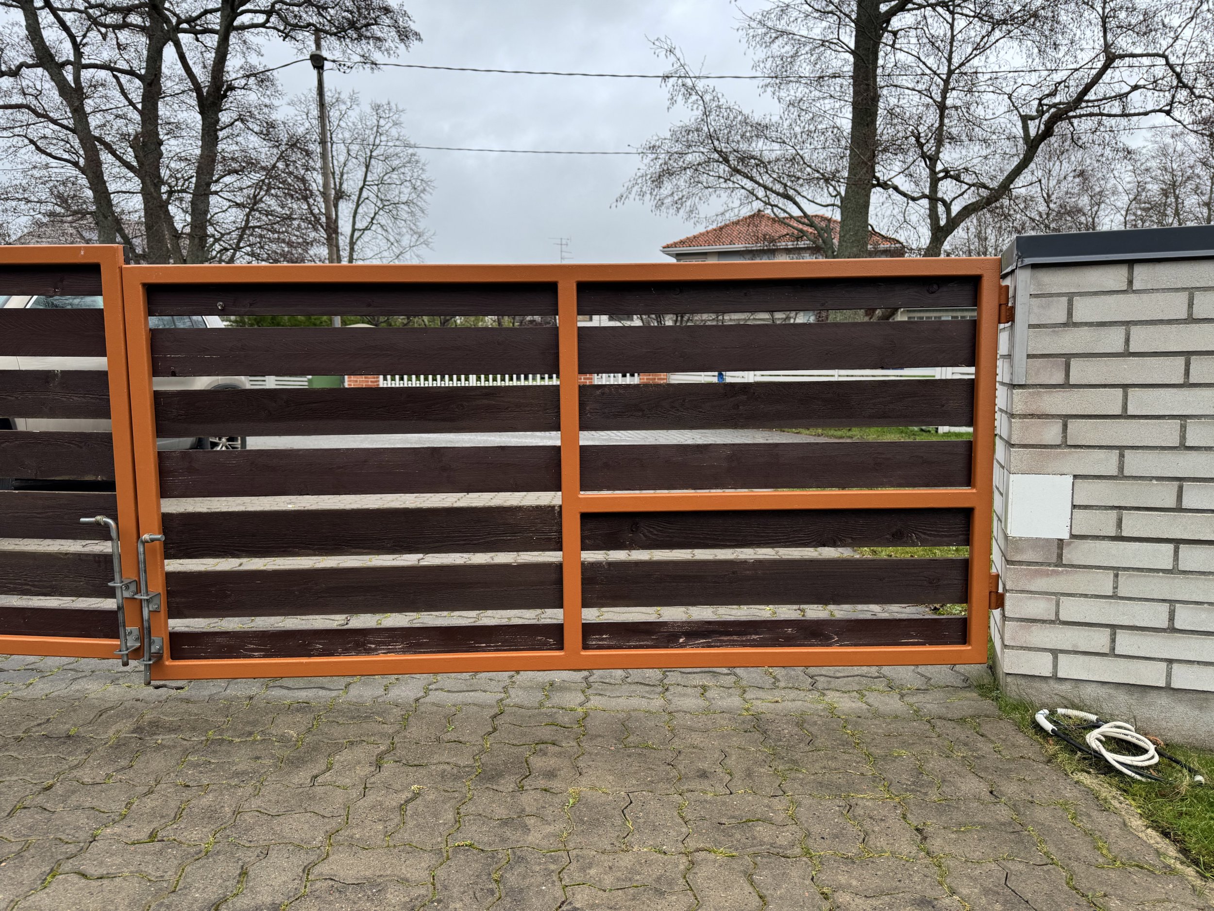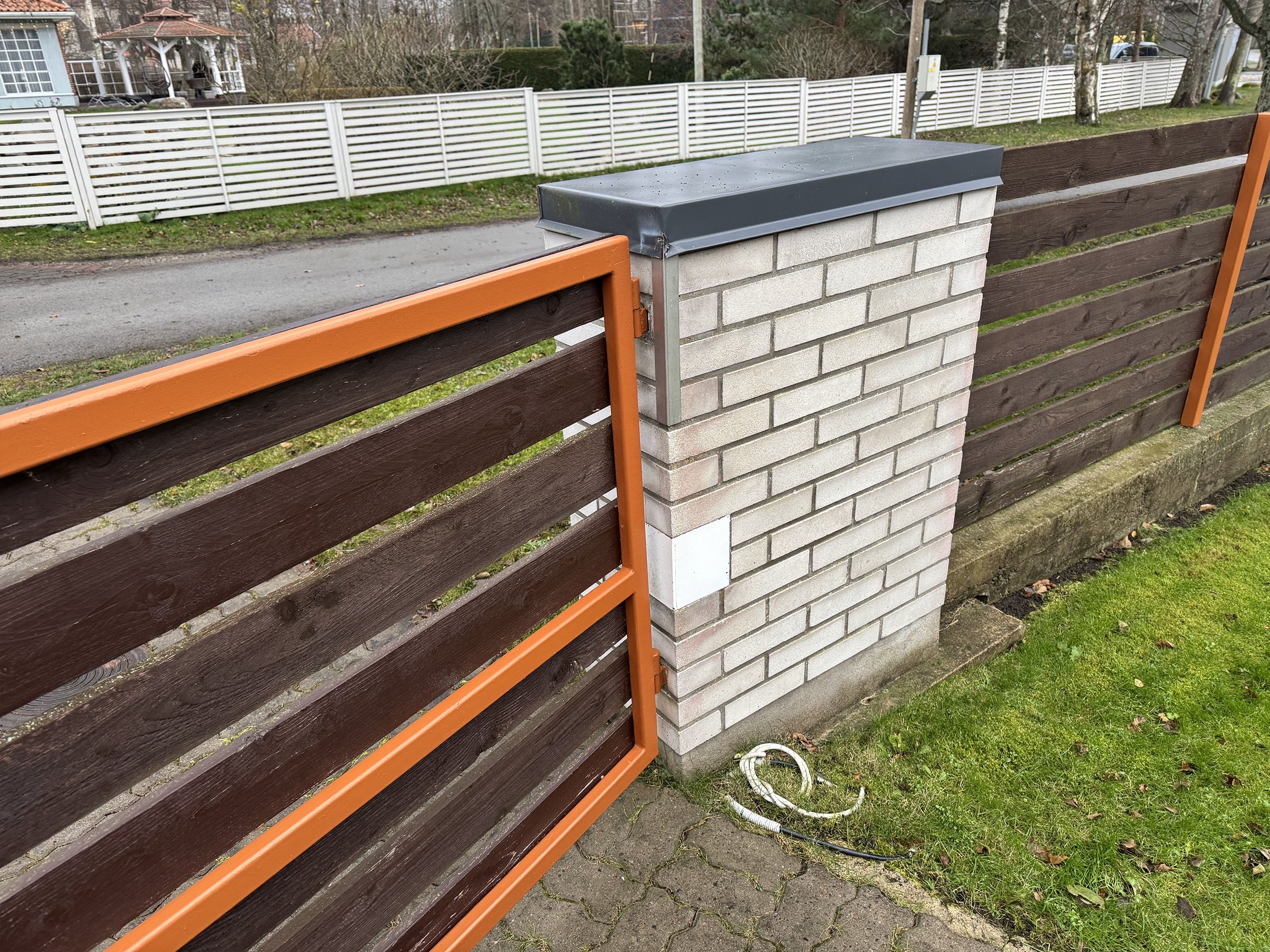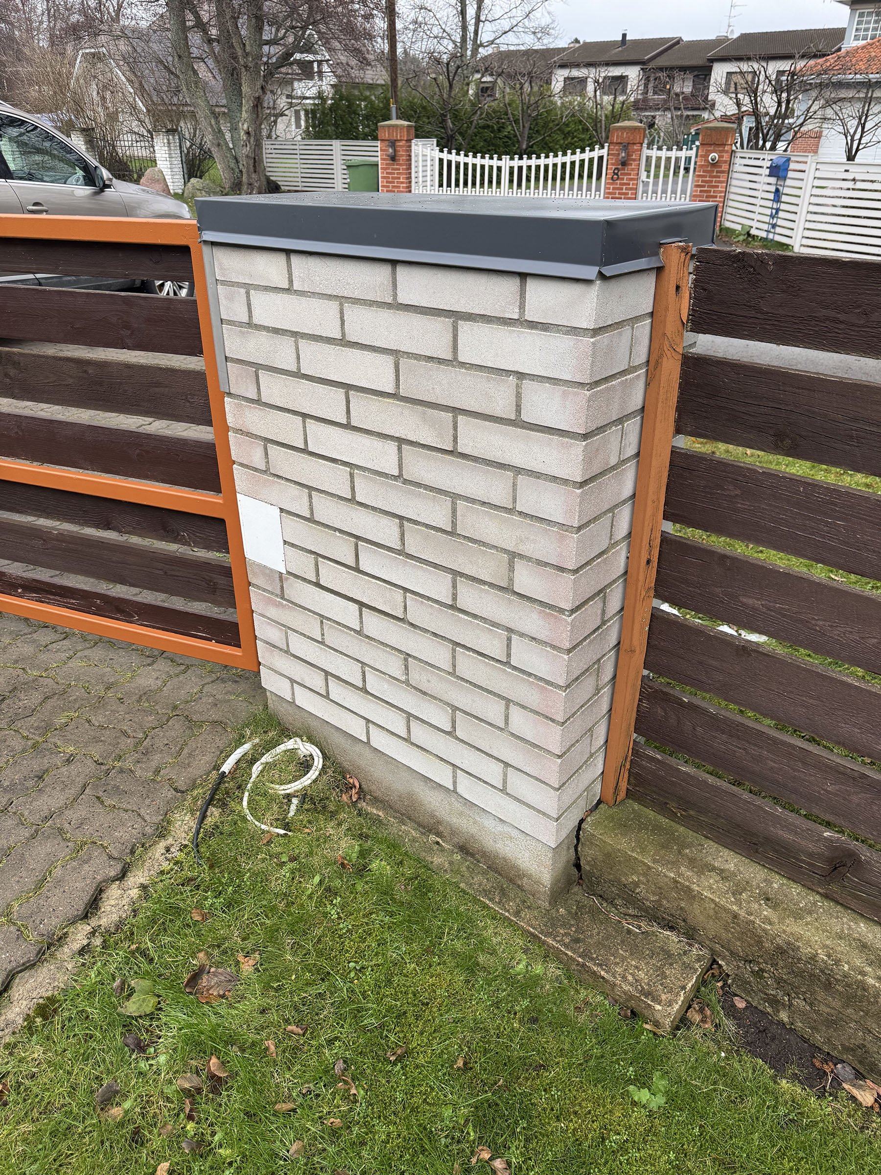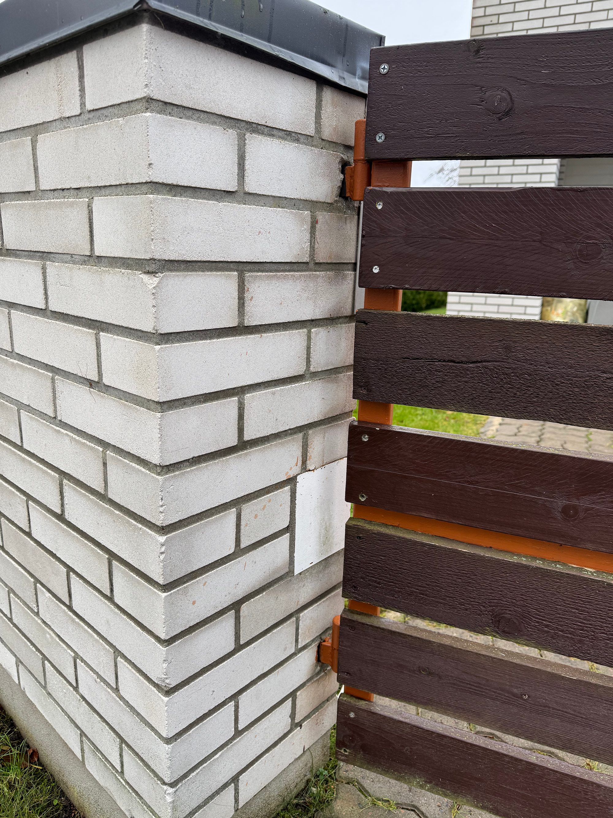 väravapost vajunud viltu (kõrval toimunud pinnasetihendaja töö tõttu) ja sellest tingituna üks väravapool ei ole enam kohakuti teisega ja värav sulgu korralikult. Soov väravapost otseseks saada (et värav jälle loodis oleks ja korralikult sulguks)