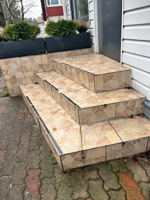Olemasolev trepp lammutada ja ehitada uus kolme astmega trepp. Ei soovi mingit erikuju vaid tavalist kandilist. Umbkaudsed mõõdud uuele trepile: laius 180cm ja kõrgus 60cm. Pesubetoonist ja kaetud graniitpuruga oleks ilmselt õige valik, kuna praegune on väga libe.