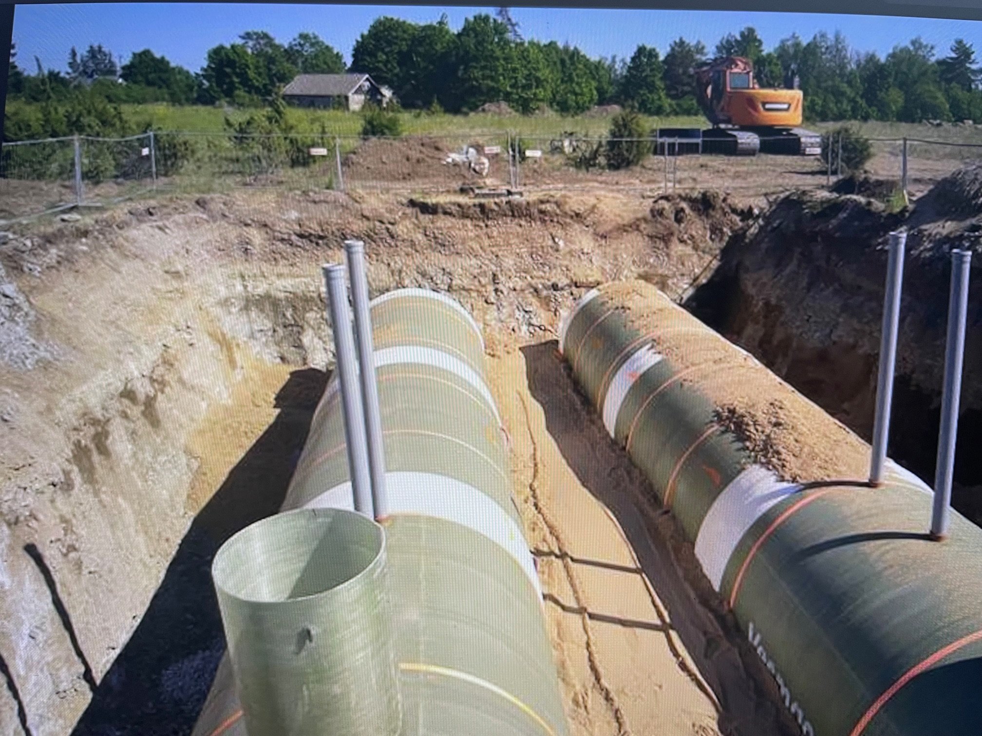 Vaja paigaldada 10m3 ( mõõdud 1600 x 5300 ) kogumismahuti ja mahutist trassi pikkus majani on ca 5-7m. Veetrass ( VLP joonisel ) pikkus liitumispunktist majani on ca 20-25m. Veetrassiga ei pea minema paepinnasesse. Toruks 32mm Pem.