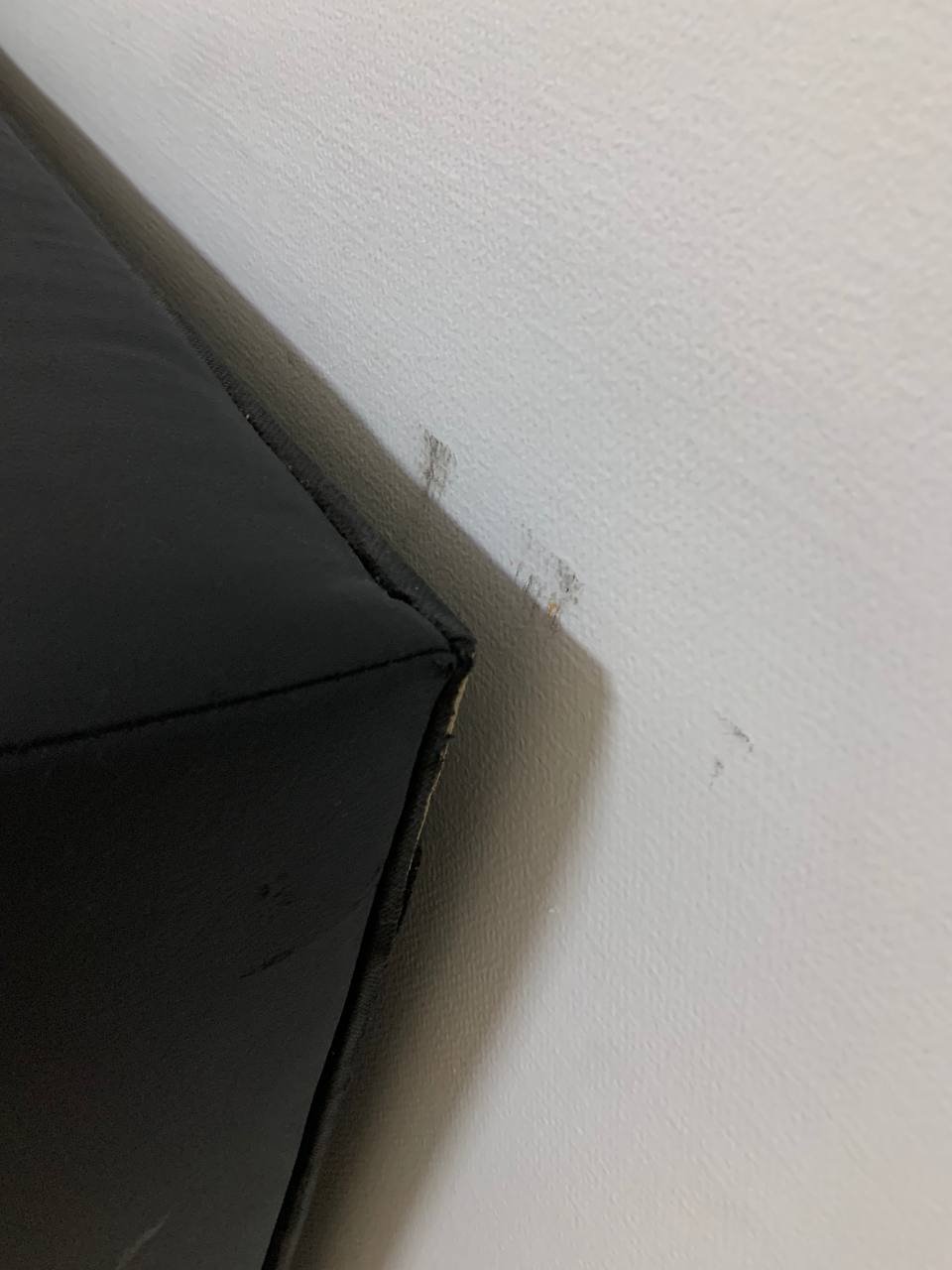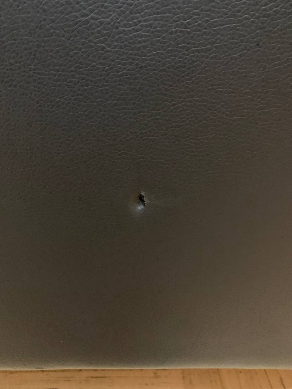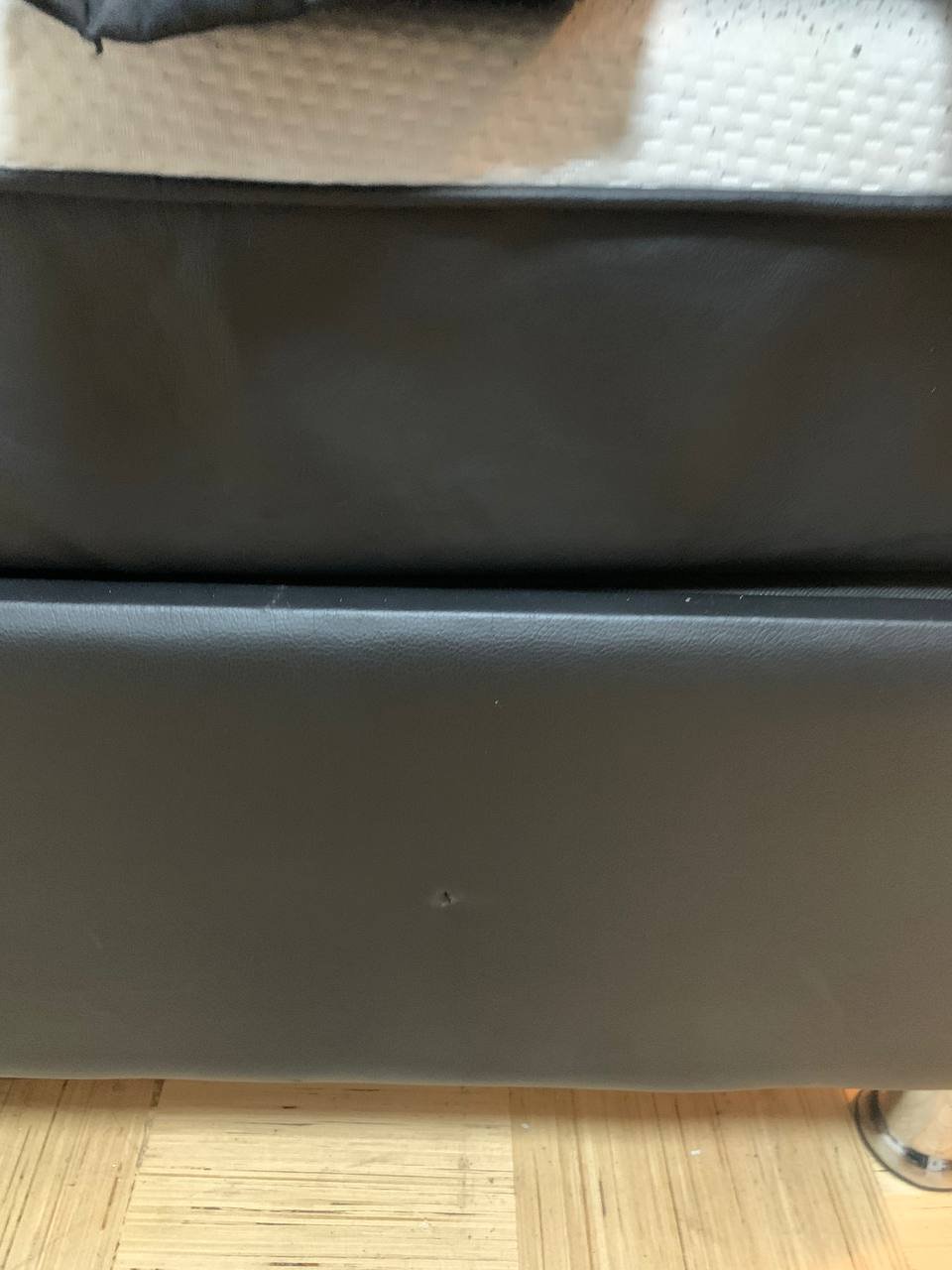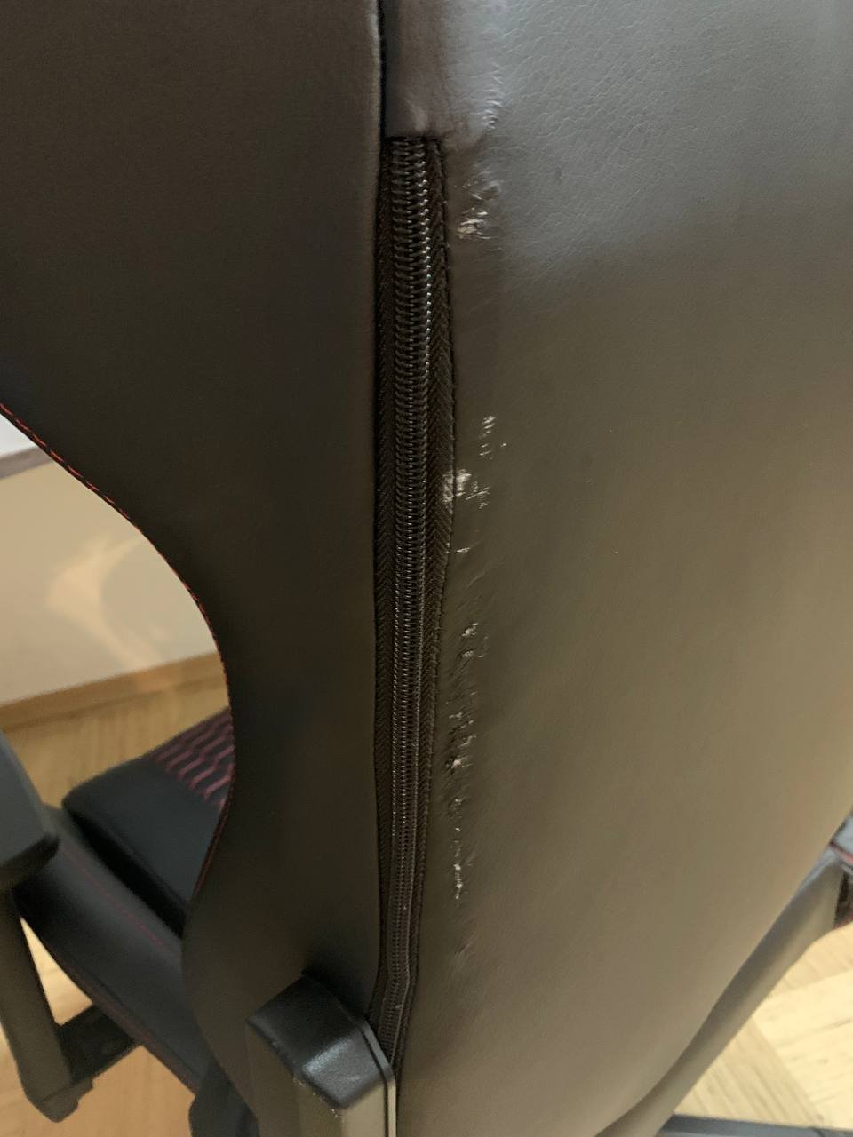 Спинка немного отошла, повреждения покрытия — исправить или заклеить в тон.