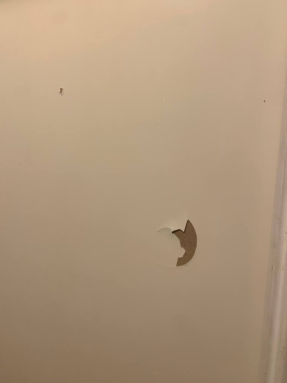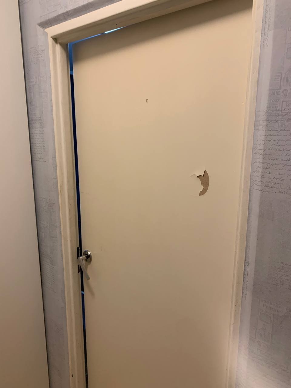 У входной двери: порвана обоина — заклеить локально или переклеить (обои в наличии). Установить уголки у входной двери.