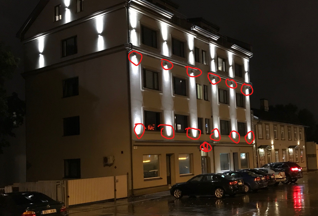 NB! välja vaja vahetada 13 valgustit ( Pildidl märgitud punasega)
