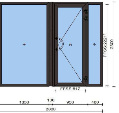 1. Erimõõdus klaas-alumiinium ukse mõõtmine ja valmistamine. 2x klaaspakett, raami toon tumehall.