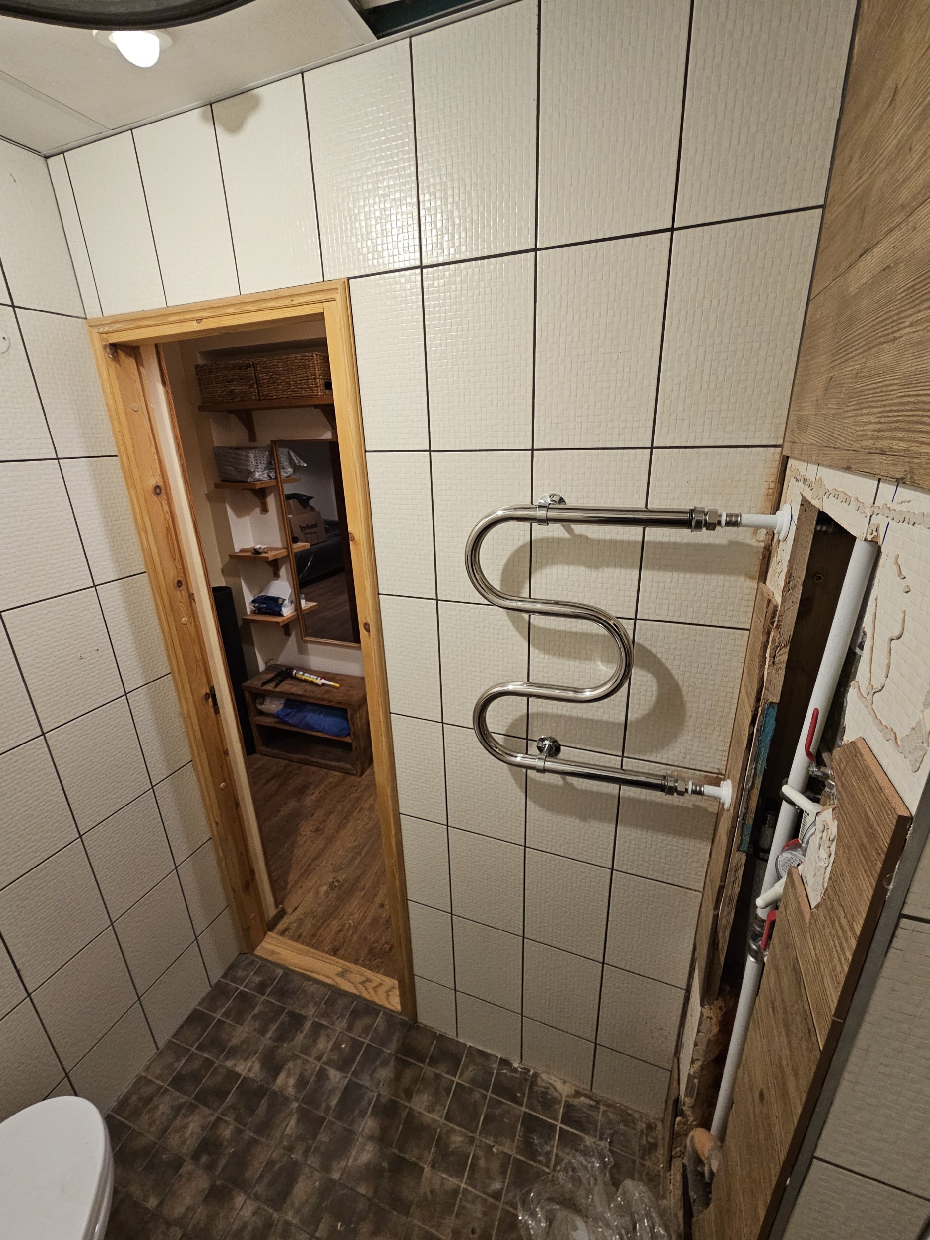 Praeguse boileri all on asunud pisem pesumasin, mille kohale võiks paigaldada valamu ja peegelkapi.