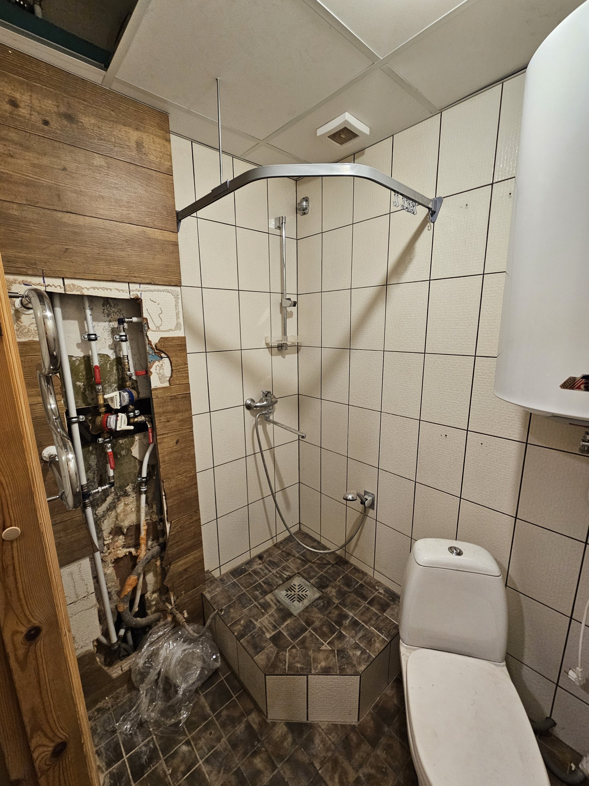 Soovin wc-duširuumi kapitaalremonti plaadistuse ja sisustuse lammutuse ja utiliseerimisega ning uue plaadistuse ja sisustuse ehitamisega. Ruum on väga väike. Korteris on ka äsja paigaldatud keskküte tsentraalse sooja veega, mistõttu senimaani kasutatud elektriboiler tuleks samuti eemaldada.