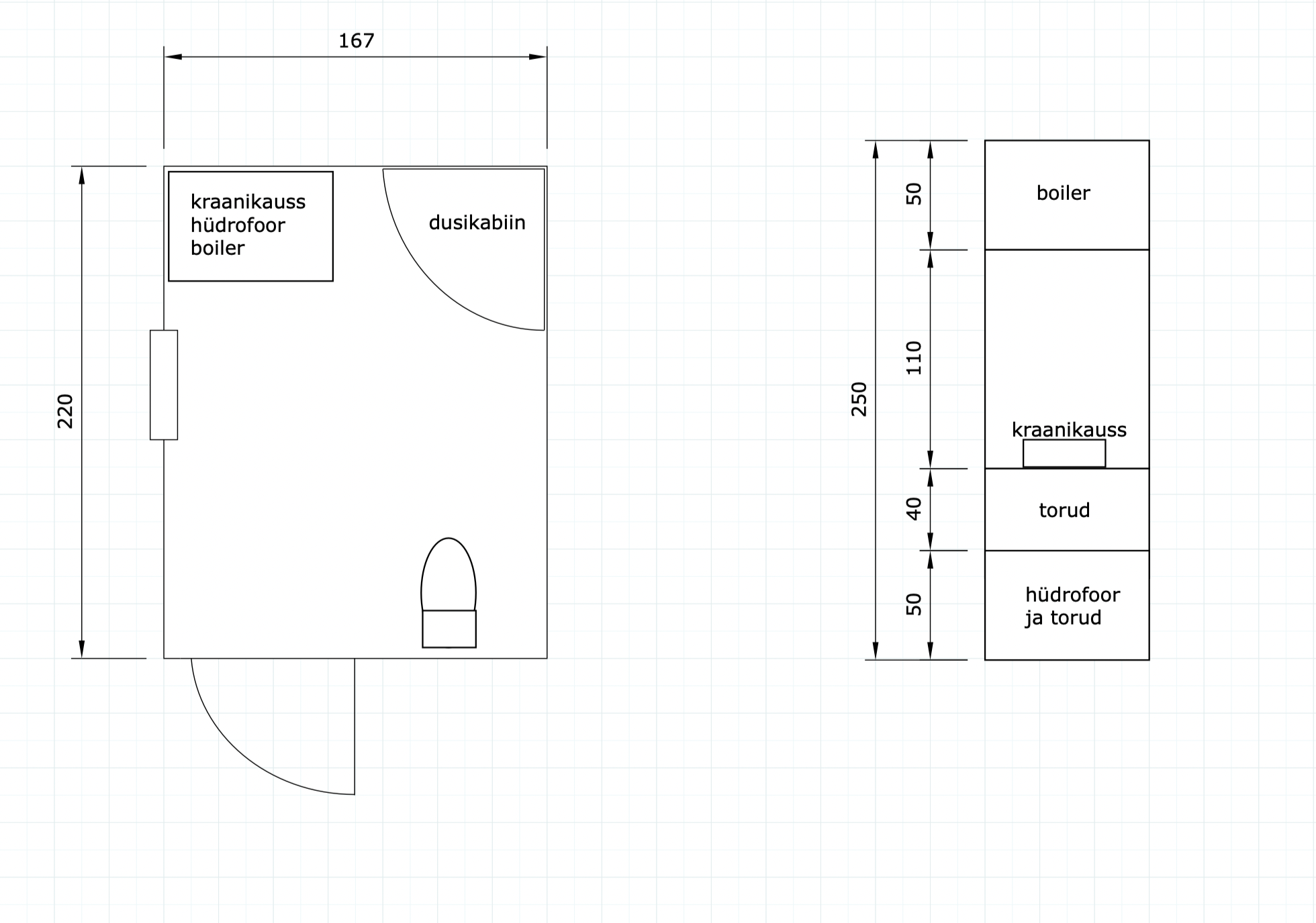 Lisana, tuleks vedada toru kõrvaltuppa-kööki, pesumasinale ja kraanikausile. Ning luua valmidus hallivee suunamiseks õue.