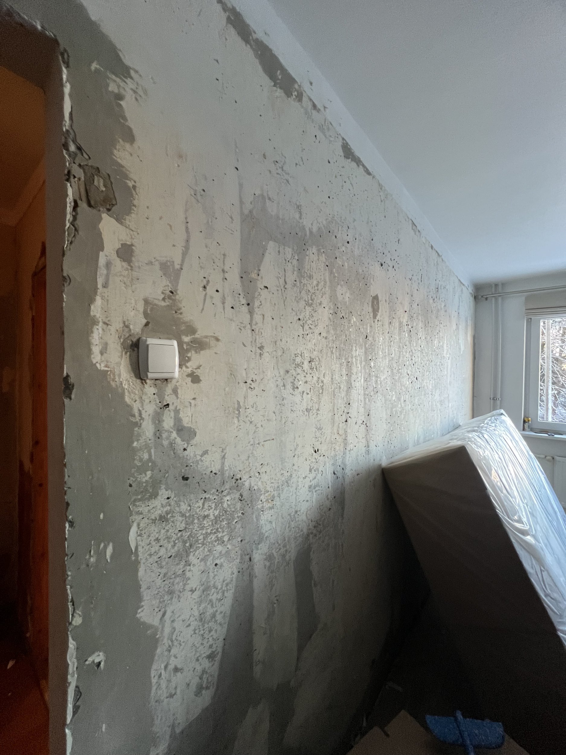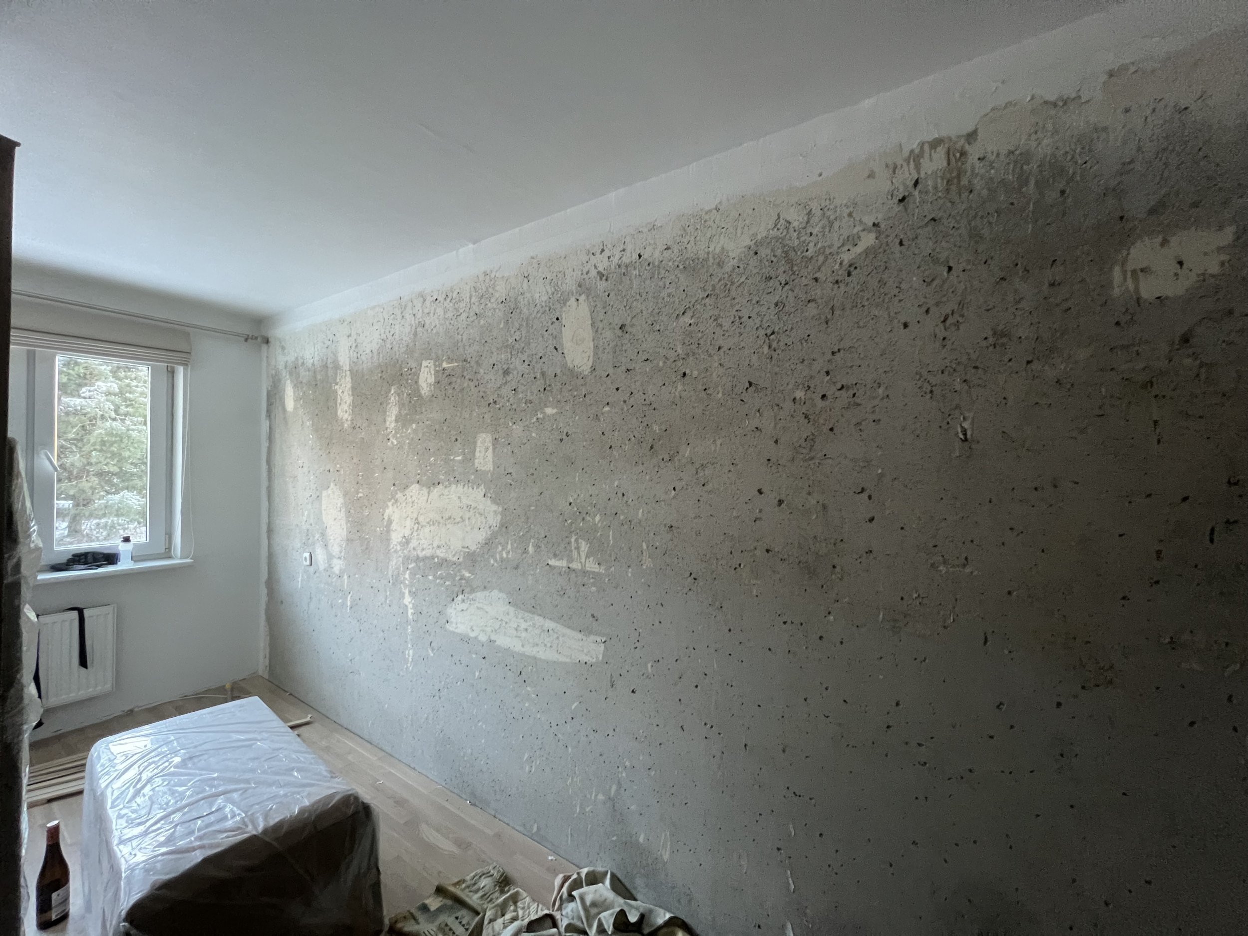 Kahe magamistoa, elutoa ja esiku+koridori betoonseinade kruntimiseks ettevalmistamine (krohvimine ja pahteldamine, lihvimine).