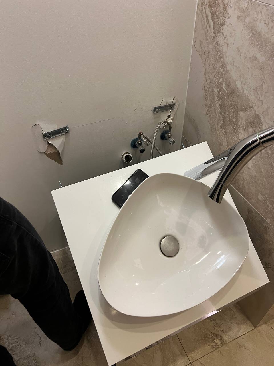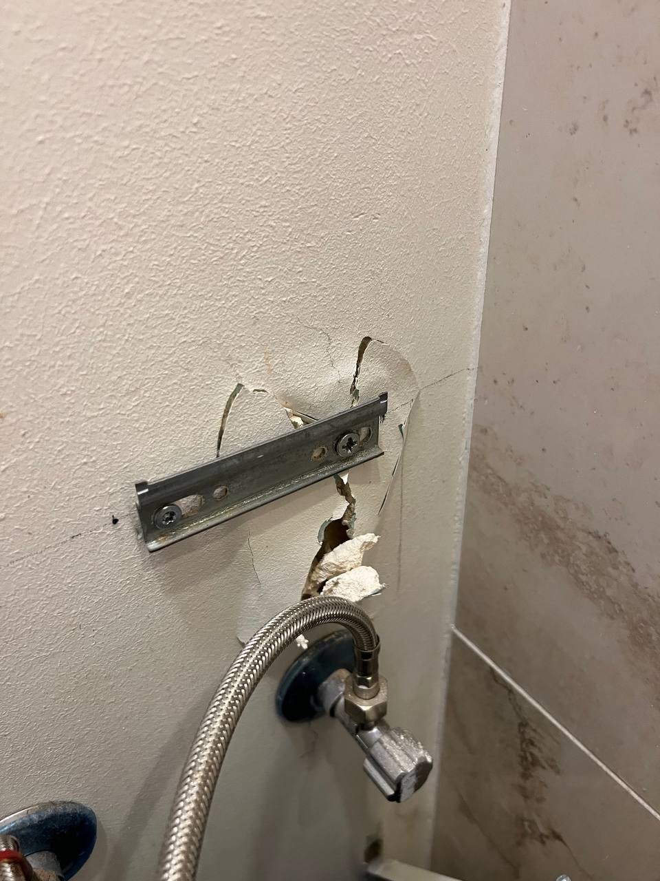 i can offer you repair job that includes: taking off the cabinet cutting out the drywall and installation plywood instead, cutting the holes for piped, installing the cabinet back and connecting to the water Plywood included |