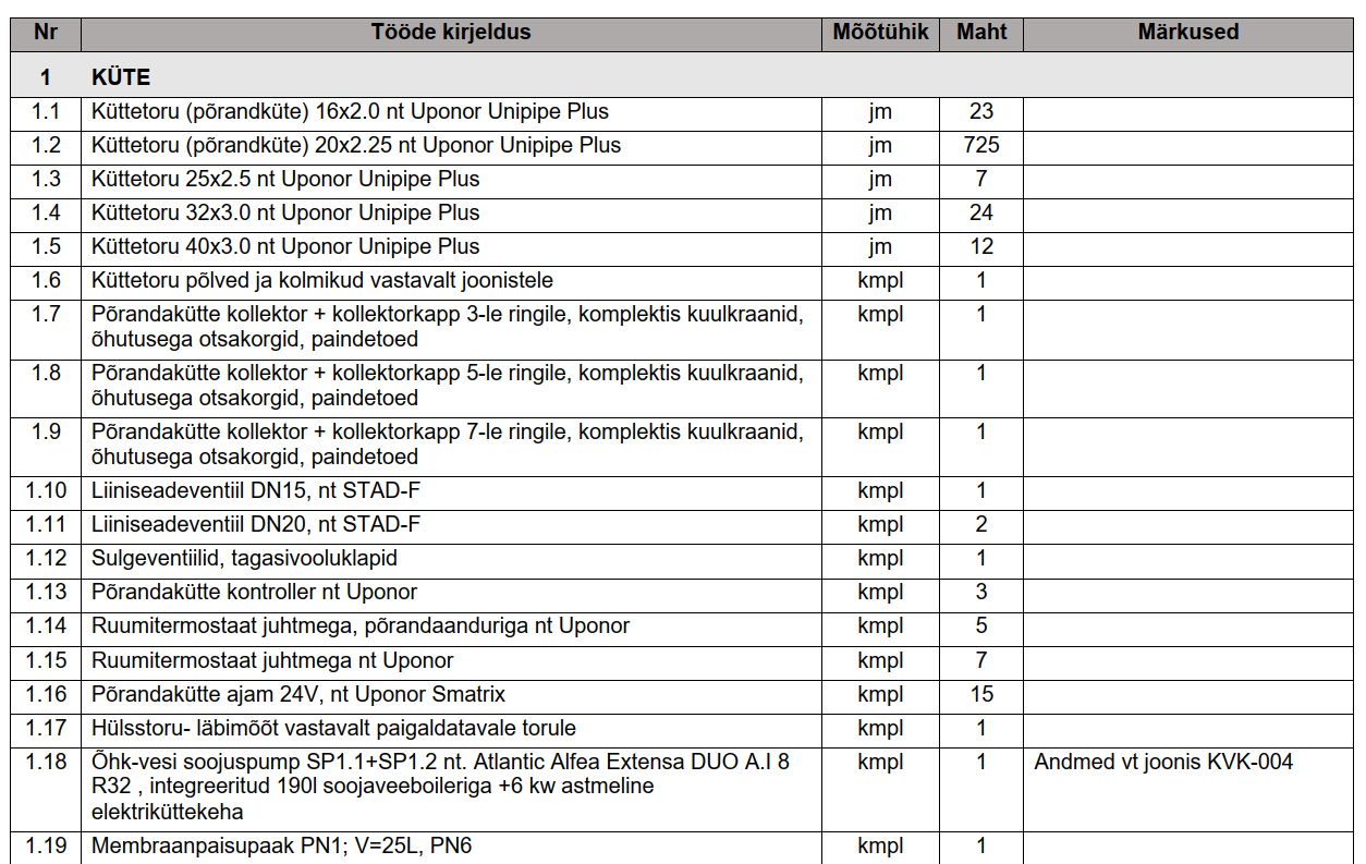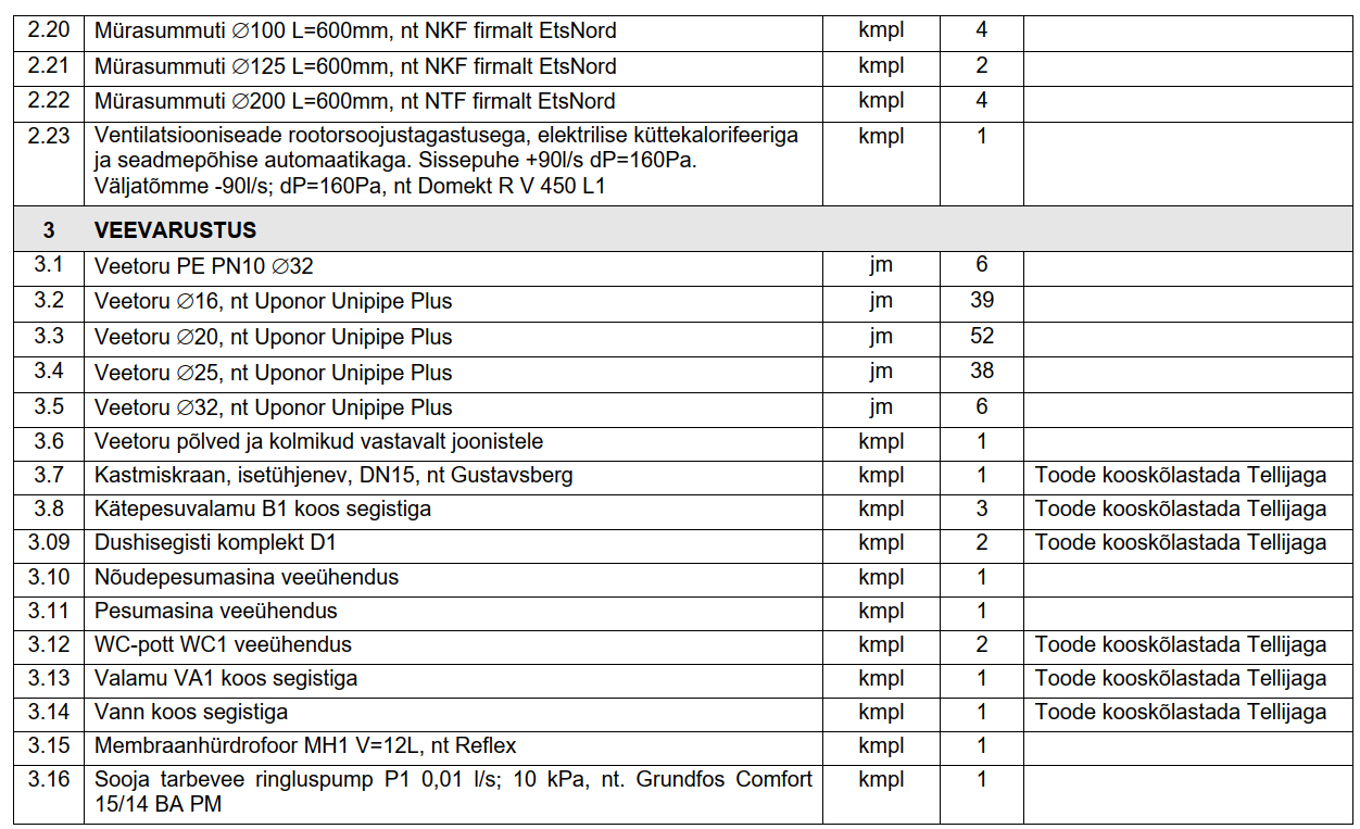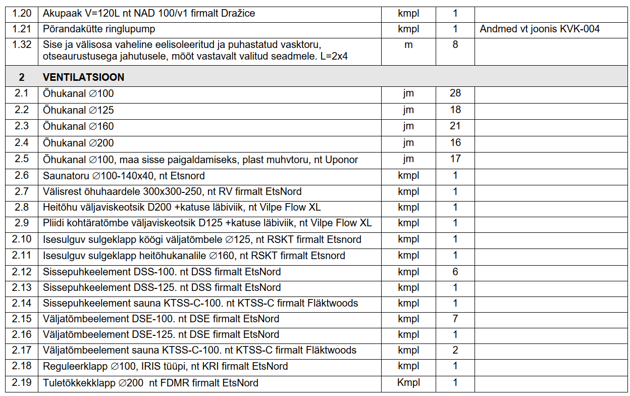 Vilpevent 850 Materjalid 2360 Abi materjalid 350 Augud 250 Paigaldus ja transport 2800 Isolatsion ja paigaldus 2330 Regulerimine ja passistamine 280 kokku 11320 |