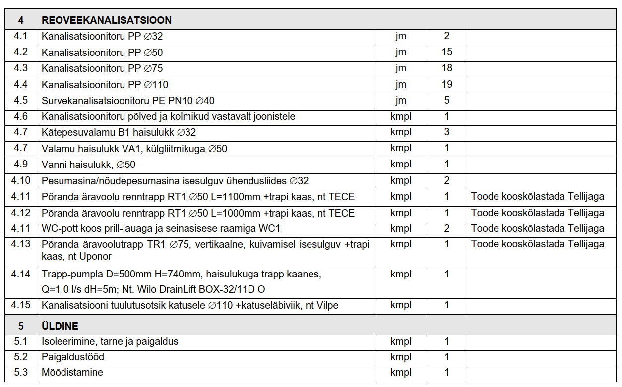 Pakkumine sisaldab vee-,kanalisatsiooni-,ja küttesüsteemi paigaldust.