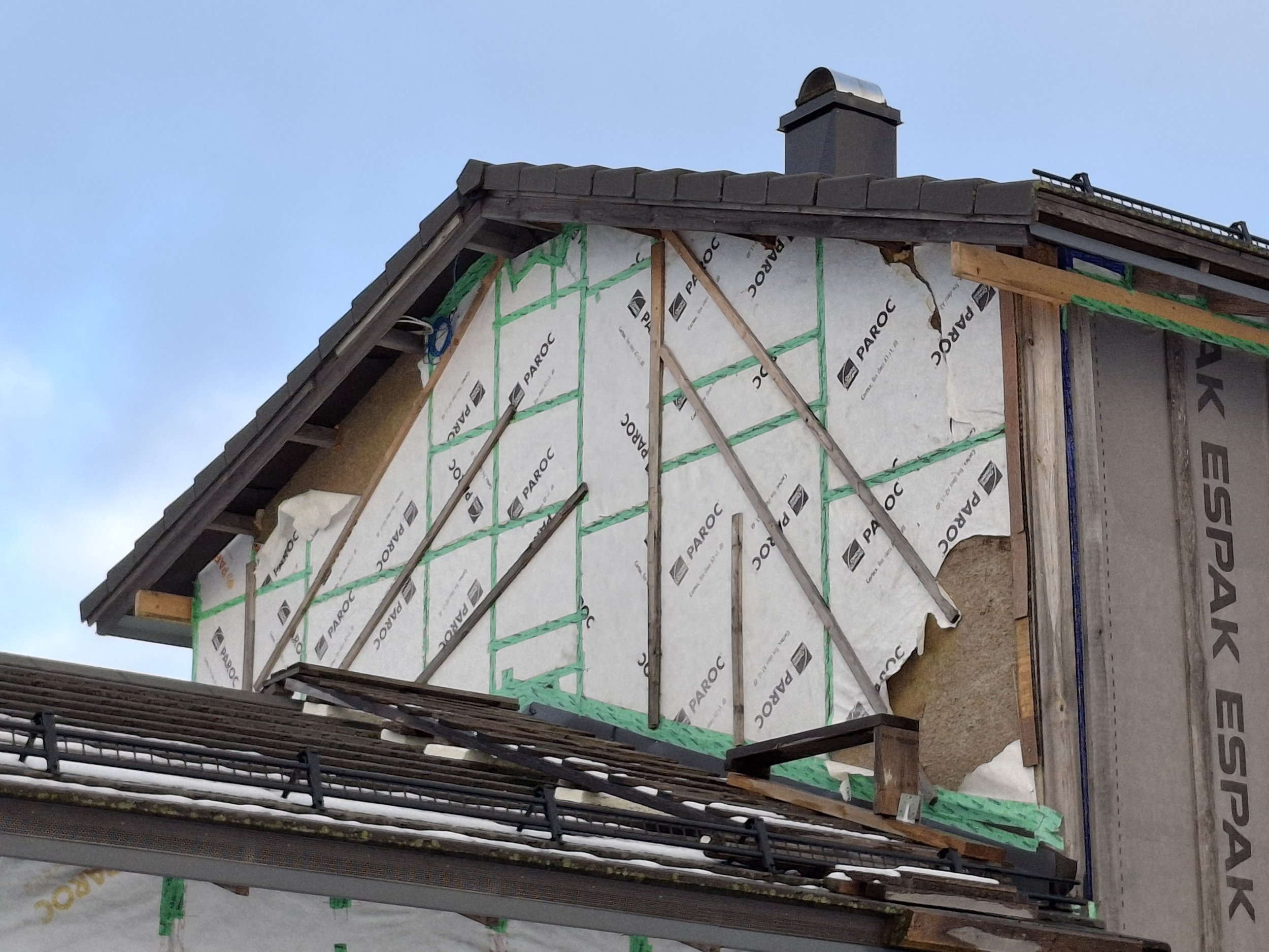 Nagu piltidelt näha, ühel on roovitus paigaldatud, teisel vajab tegemist. Sooviks hinnapakkumist koos aknapleki paigaldamisega ja palede viimistlemisega, samuti tuulekastid. Ühesõnaga piltidelt vaadates need kaks seina lõpuni ära teha. Tellingud on hetkel veel olemas, nende hinda pole vaja arvestada.