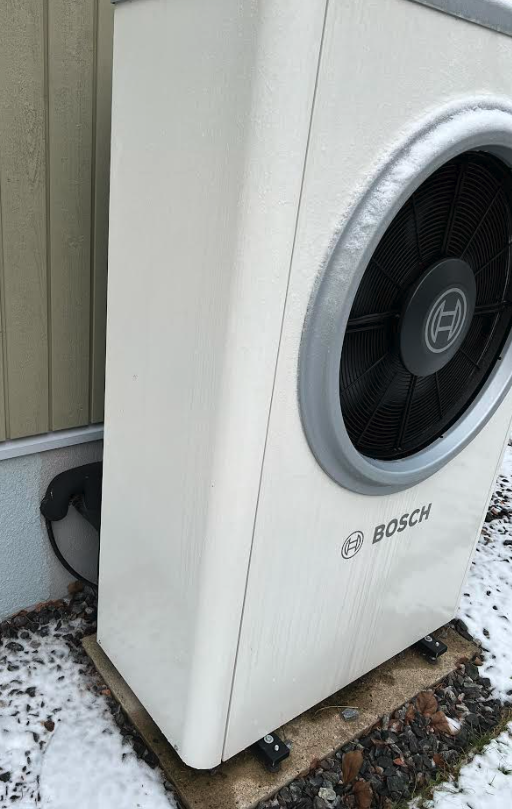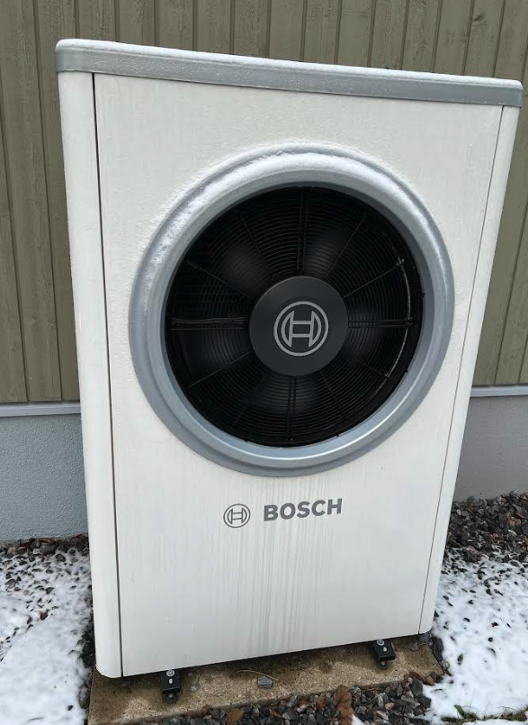 Maja otsaseina (Otsasein on tänavaga risti. Tänav jääb piltidel paremale) ääres paikneb soojuspumba väline seade Bosch HP-AW Compress 7000i AW AWE.