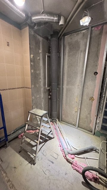 Выравнивание пола, иготовления подиума под трап, гидроизоляция стен и пола, установка плитки стен и пола, затирка и силикон, примерно 30 км метара. плитака 120х60 на стенах на полу 60х60