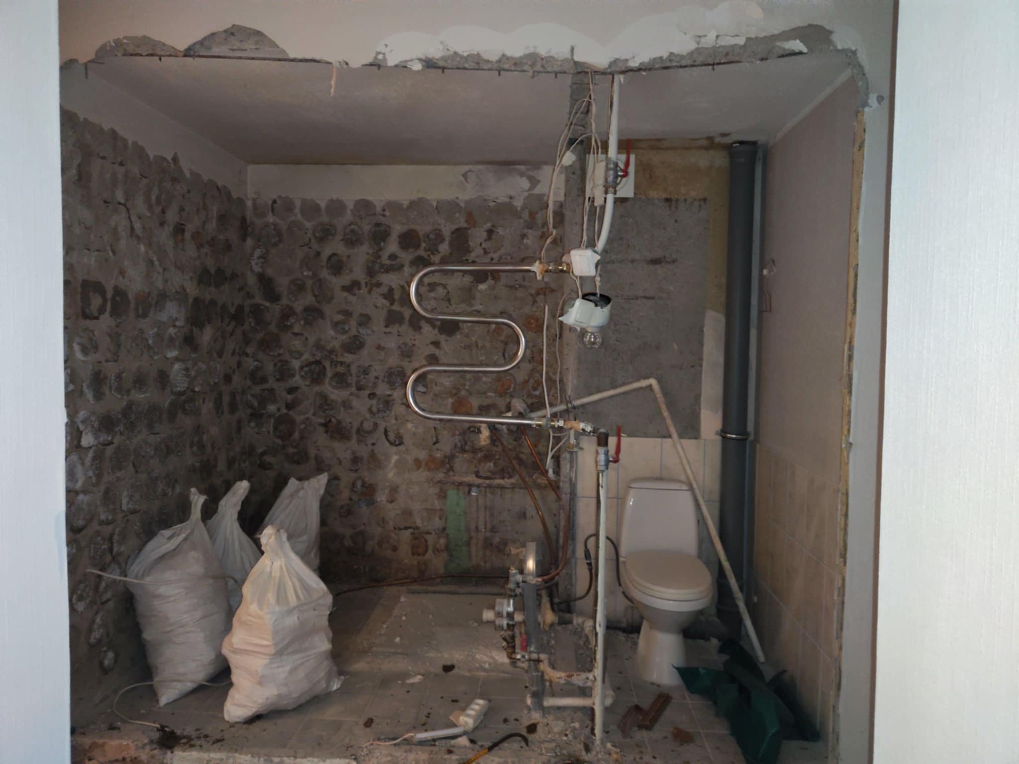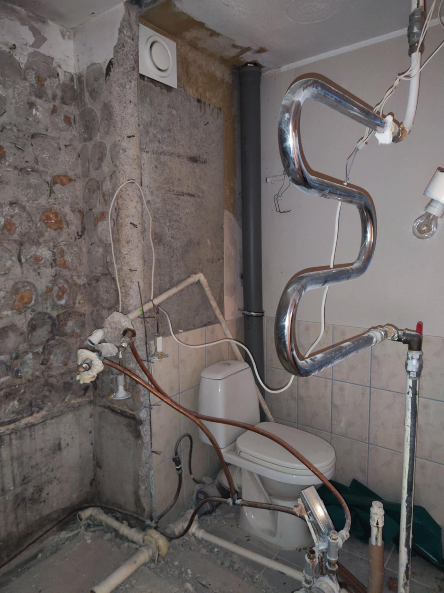 2. Esimene töö on vannitoa täisremont vastavalt plaanidele. (hetkeseis fotodel).
