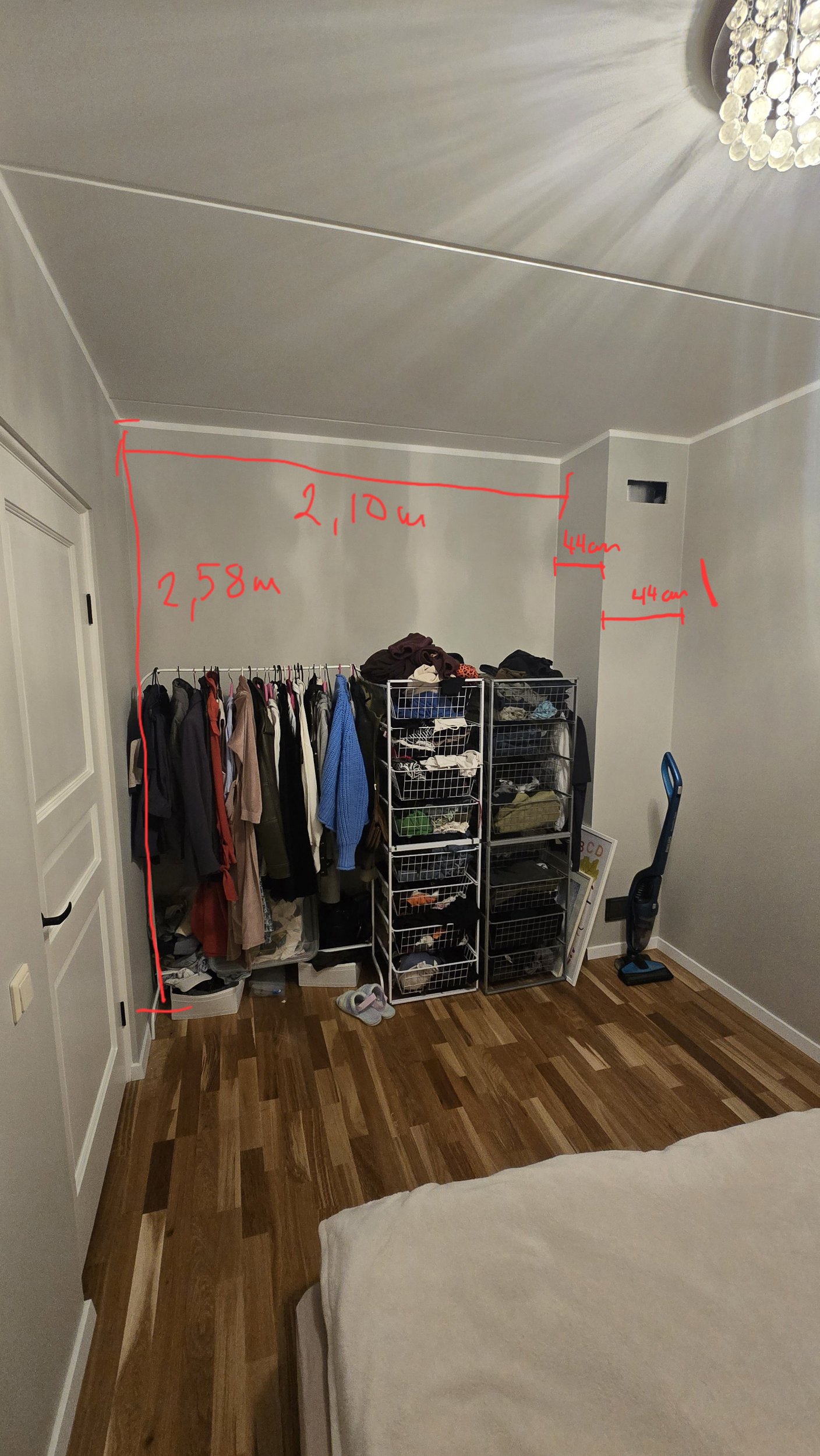 Otsin eritellimusmööbli valmistajat + paigaldajat. Pakkuge hind koos mööbli valmistamisega + paigaldusega. Kapp peaks katma kogu seina maas laeni.