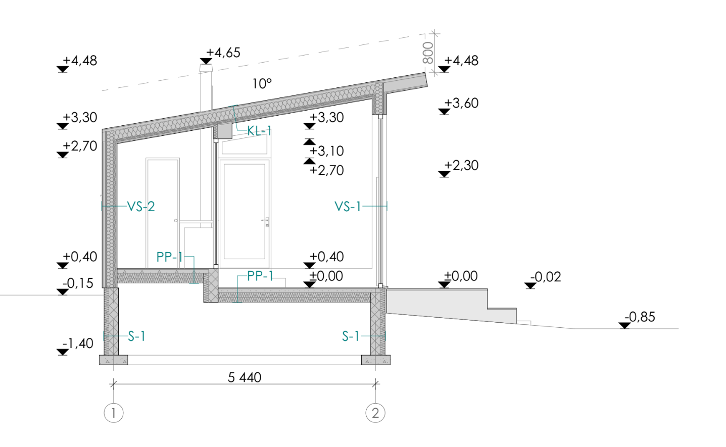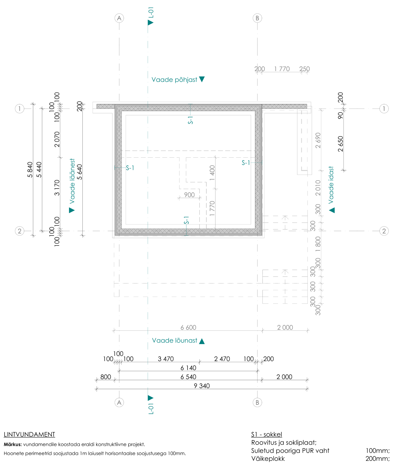 Projektis on täies mahus lintvundament, kuid võib kaaluda ka ümber kujundamist nii, et ülemine osa on lint- ja alumine on postvundament.