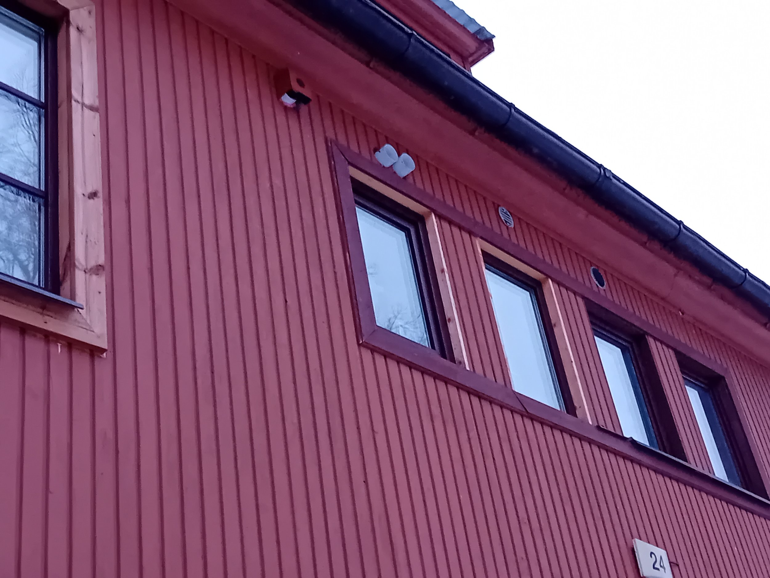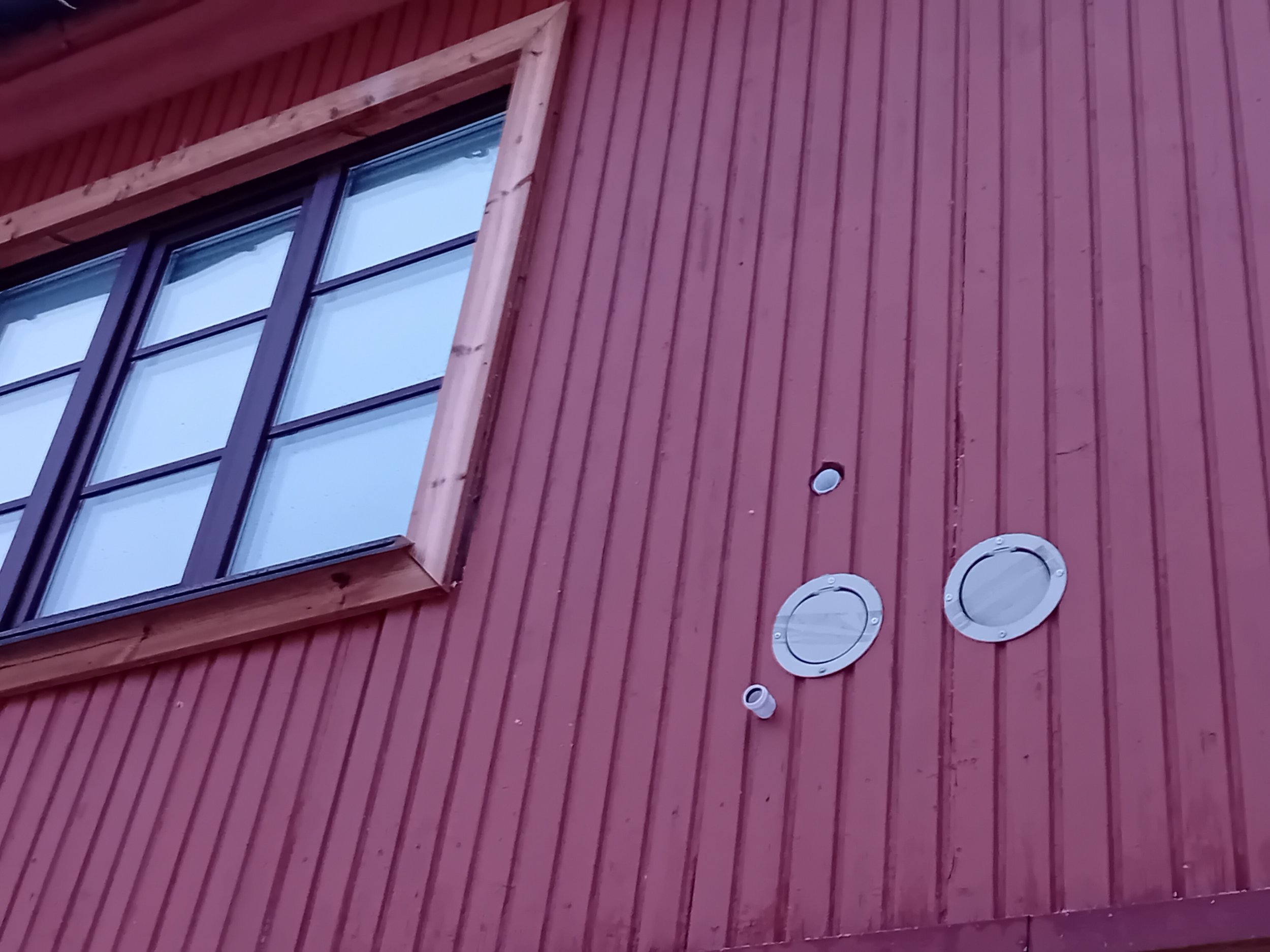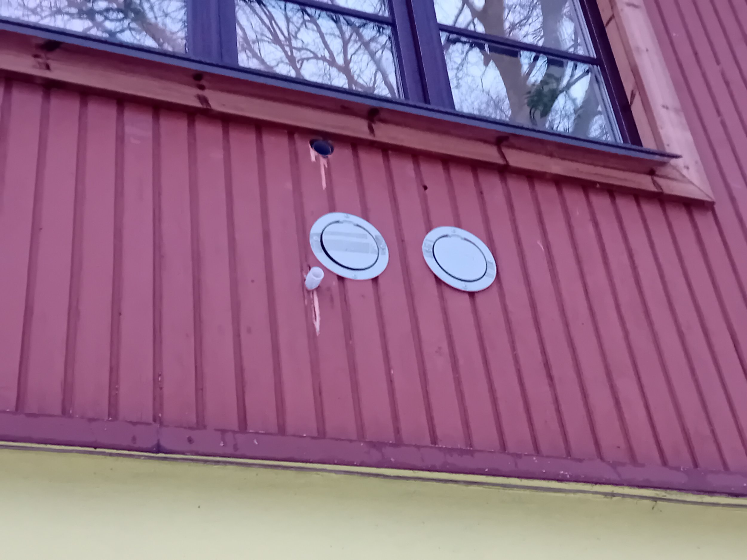 1. Fassaadi tööd teise korruse kõrgusel. Lõigata tasaseks väljaulatuvad fassaaditorud. Paigaldada ventilatsiooniavade väliskatted. Üks olemasolev ümar tuleb välja vahetada. Katted on olemas ja värvitud. Redel olemas.