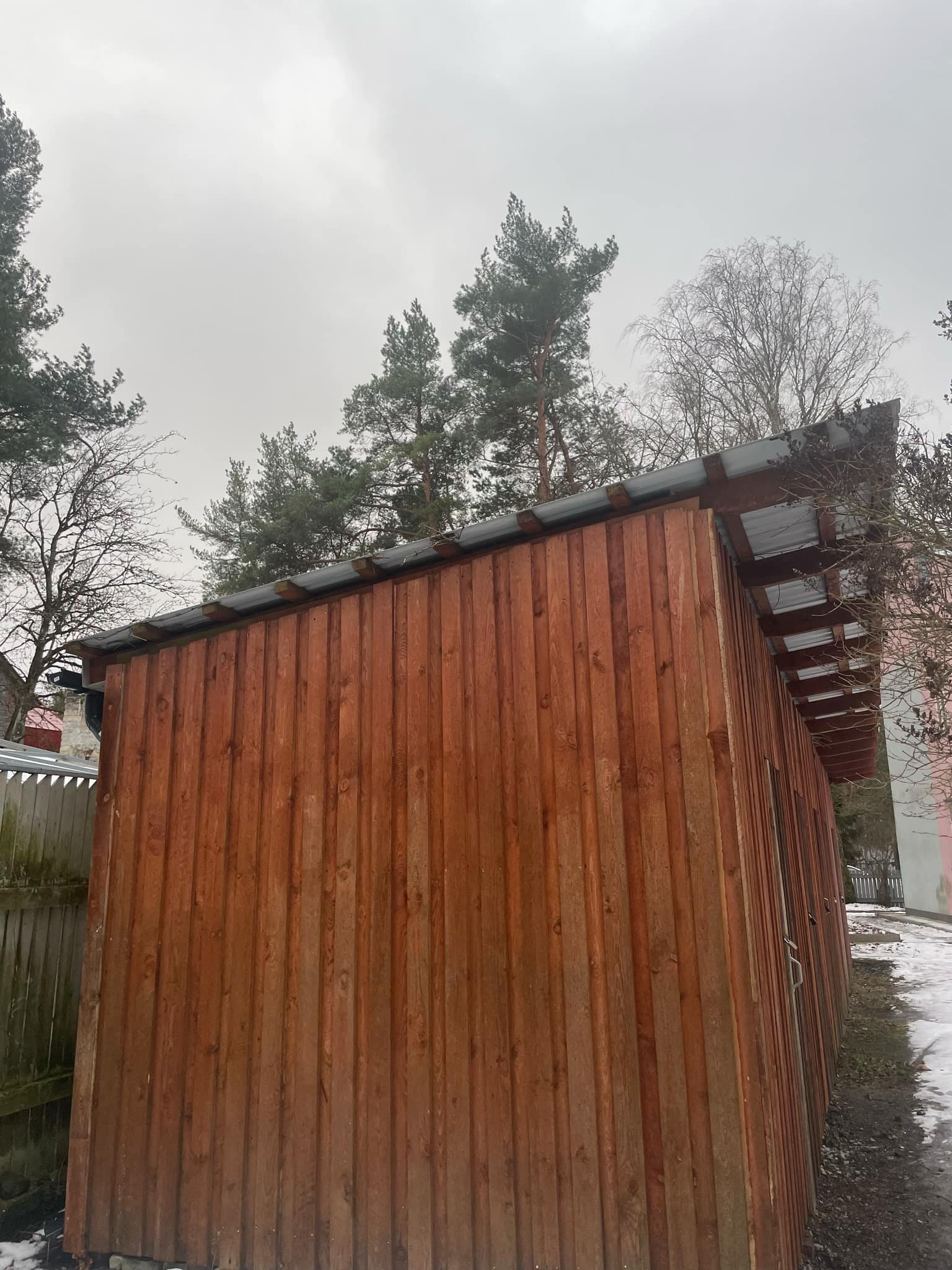 Materjal läheks umbes 600€. Täpsema pakkumise materjalile teeks siis kui kohapeal olen saanud täpse arvestuse teha. Laudis hetkel 18x120 1krunditud ja värvitud. Lisaks siis lakk mis kantaks peale veel. Töö oleks 1200€ |