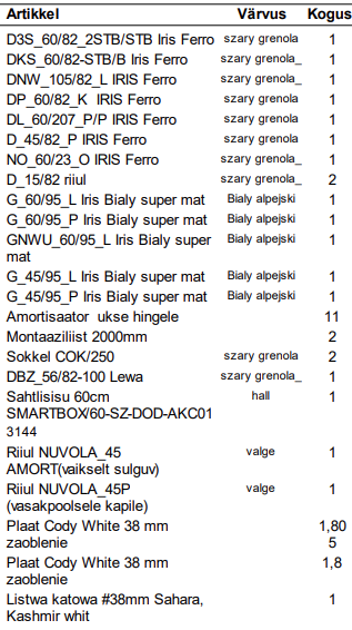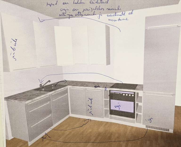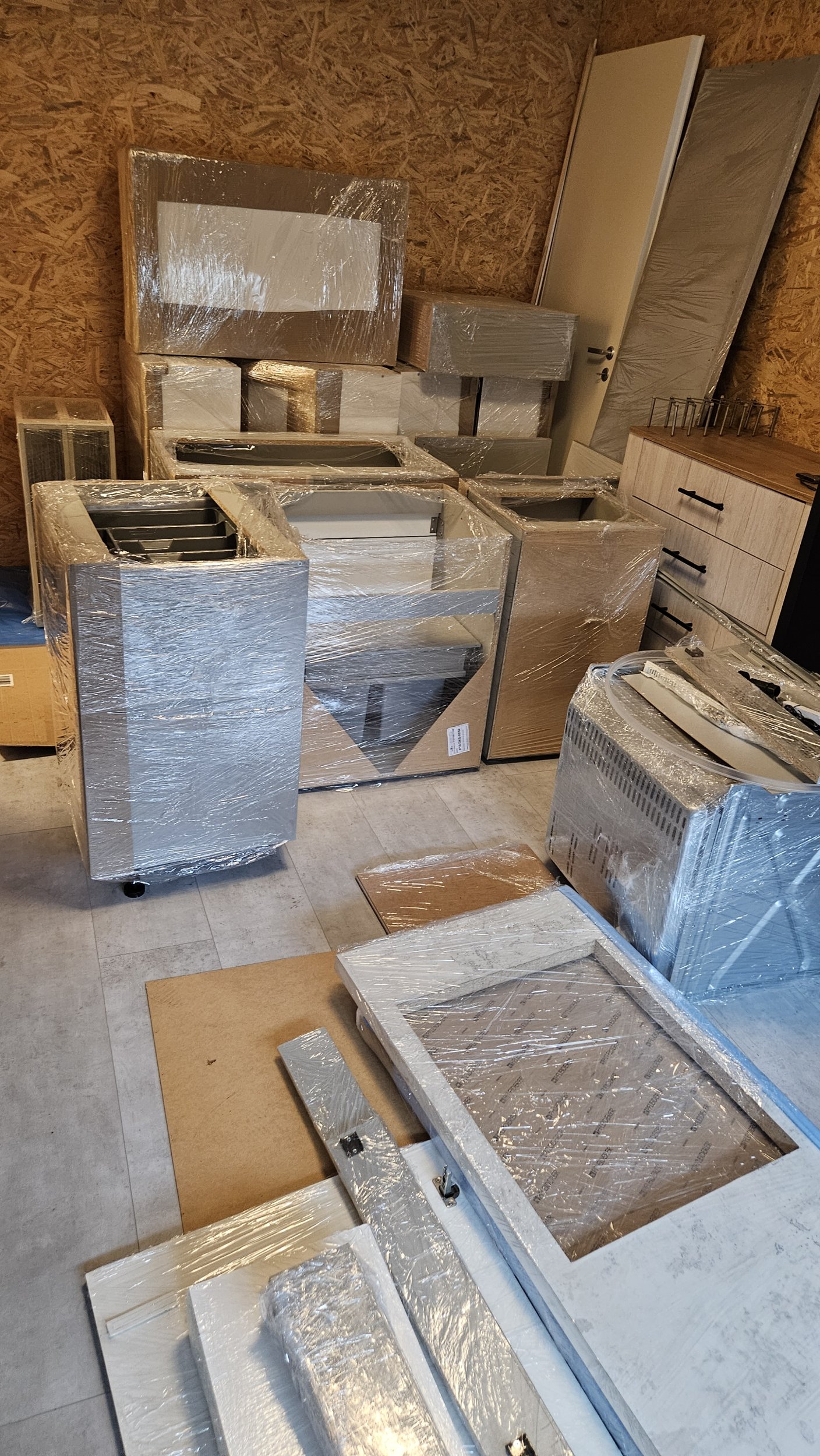 köögimööbel on enamus osas kokku pandud, vaja paigaldada ja ühendada;