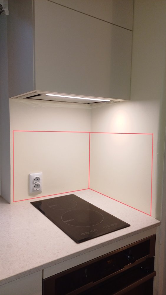 Sooviks plaatida töötasapinnast 40cm (ehk siis nelja plaadi) kõrguses, mitte kuni kapini.