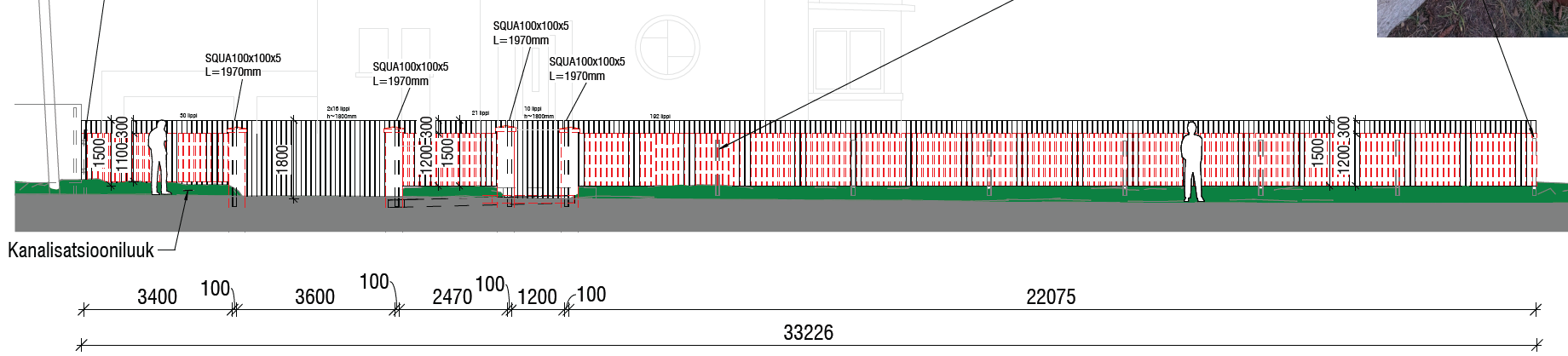 1. Punane puitlippaed, lipid 20x95mm, vahed ~15mm, kõrgusega 1500mm, sügavimmutatud puidust.