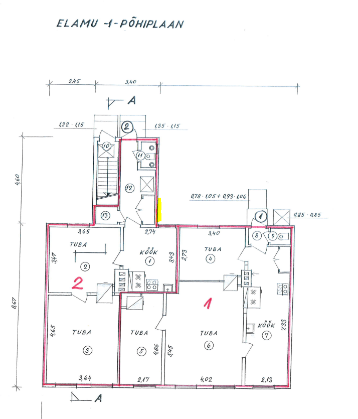 Renoveerisime korteri - ukse asukoha muutus, uus asukoht märgitud kollasega joonisel. Lisaks paigaldatud õhksoojuspump. Vajame ehitusprojekti.
