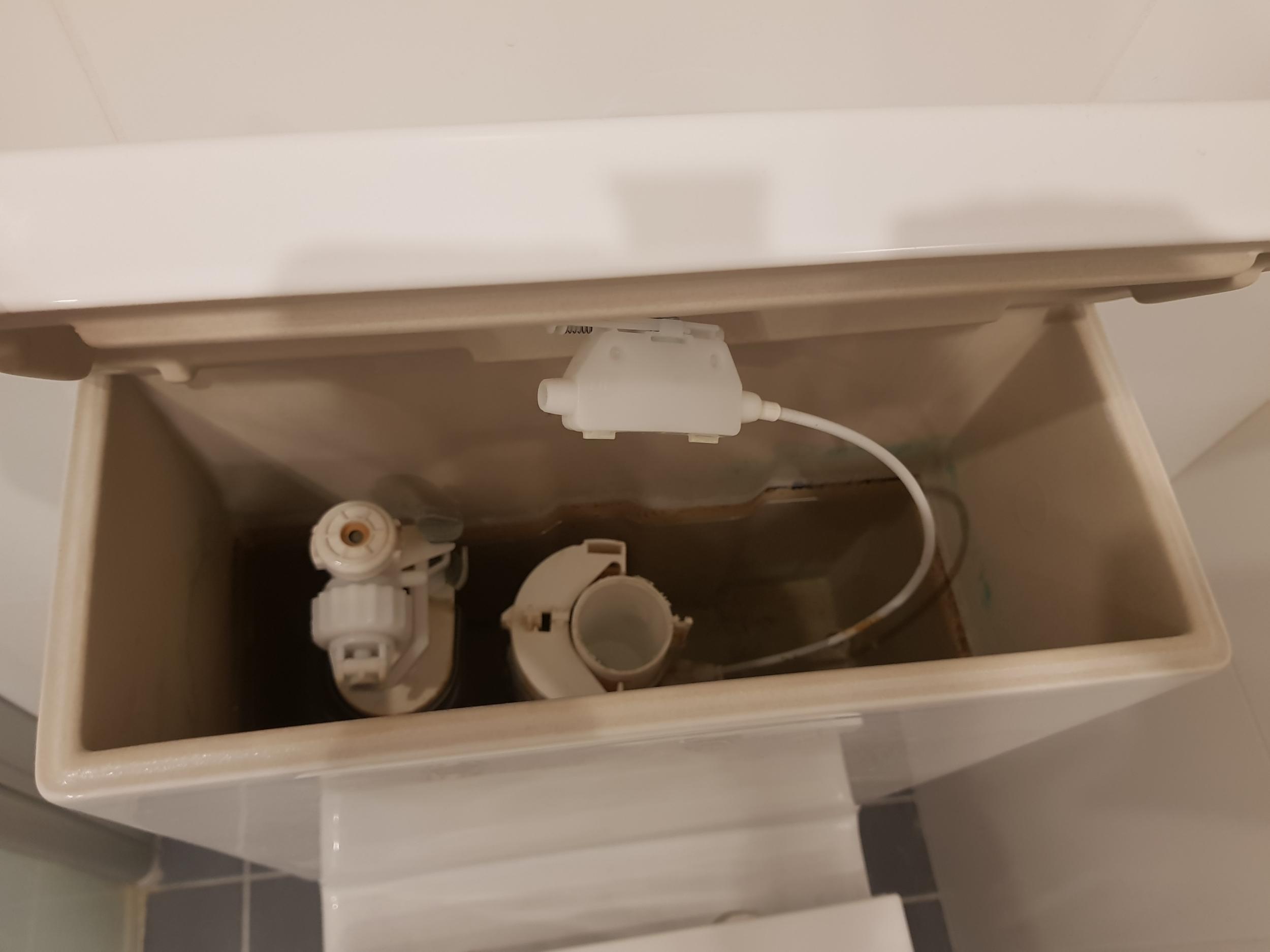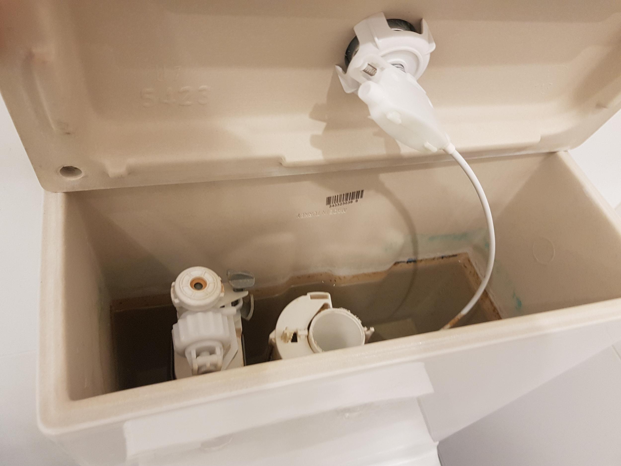 3. Kui WC poti loputuskasti nupp lõpuni alla vajutada, siis nupp jääb alla ja veevool ei sulgu. Oleks vaja see mehhanism korda teha.