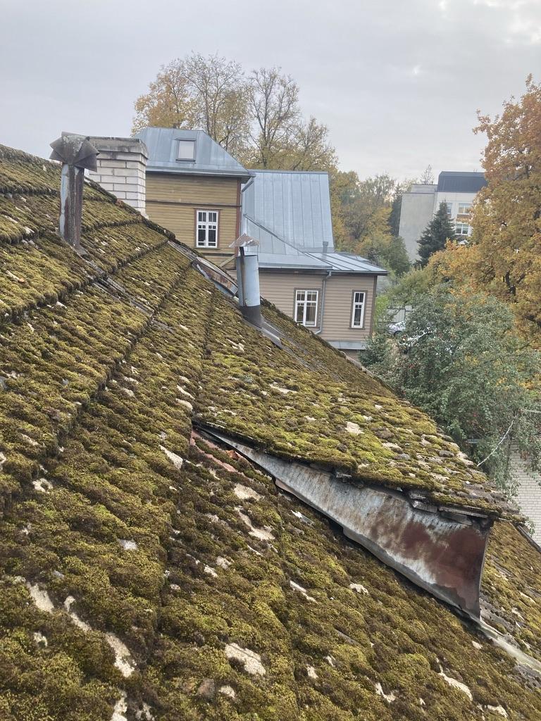 Vajalik miljööväärtuslikul alal asuva maja kivikatuse renoveerimine. Sarikatel ja roovidel esineb kohati väljendunud niiskuskahjustusi. Mingis ulatuses vajalik kandvate konstruktsioonide väljavahetus. Korstnapitsid samuti kahjustunud. Ehitisealune pind 112 m2.