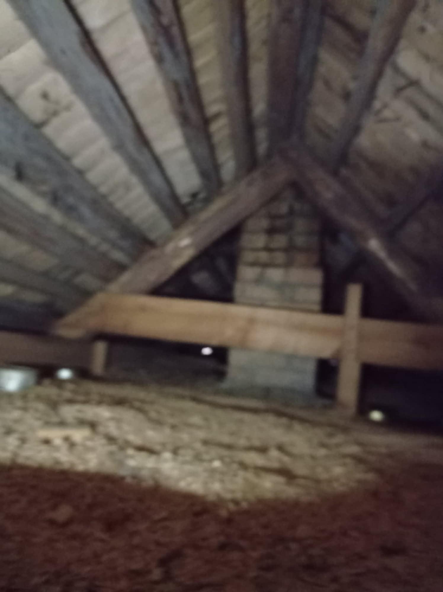 Hetkel katusel pressitud papp, kuid kunagi olnud eterniit. Alumise kihina on all vana roovitis.